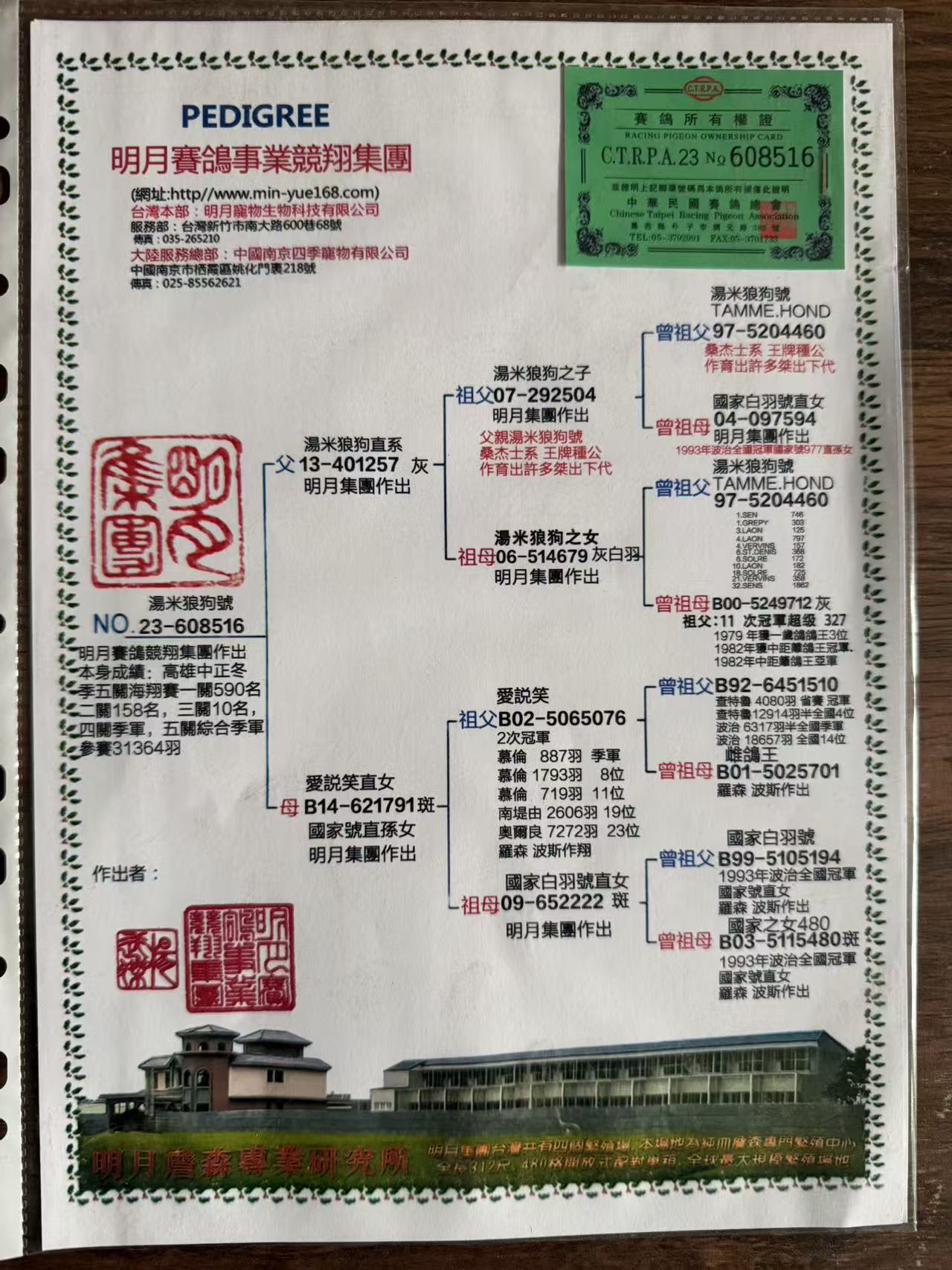 - 當(dāng)前查看拍賣鴿:臺灣明月集團(tuán)“湯米狼狗號”本身成績五關(guān)季