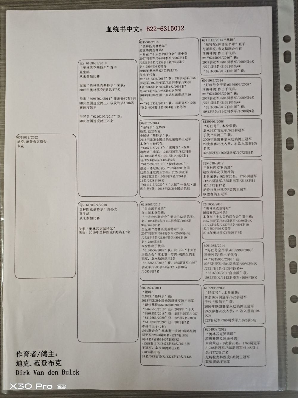 晟捷國(guó)際鴿業(yè):鴿主養(yǎng)鴿30余載,引進(jìn)世界銘鴿,公棚鴿王,地方賽鴿王,前名次鴿多羽。鴿舍主血:利奧賀爾曼斯,楊胡曼斯哈利,奶酪,胡本,克拉克,詹森紅狐,麥克斯,51次,019,桑杰士,馬克羅森斯,戈馬力,速霸龍,東方不敗,喬斯佛卡門,小迪迪,,甘納斯,芬妮卡5000 晟捷國(guó)際鴿業(yè):代表成績(jī):2009年獲得惠翔3名,團(tuán)體冠軍, 2006年大鵝島公棚預(yù)賽21名,決賽84名。 2007年盛世公棚500公里決賽182名296名425名。 2008年盛世公棚500公里決賽61名,276名。 2009年獲得千山公棚決賽9名,鴿王10名.... 2011年獲得祺陽(yáng)牧業(yè)決賽17名37名243名,團(tuán)體5名。 2014年獲得丹東祺陽(yáng)牧業(yè)決賽138名 2015年海逸國(guó)際公棚393名鴿王11名 2016年北戴河六藝國(guó)際公棚預(yù)賽26名,決賽51名。 藍(lán)湖欲鴿決賽73名,精英賽冠軍。 2017年大安信和公棚決賽233名300名414名。 北戴河六藝國(guó)際公棚預(yù)賽151名決賽145名 2018年春潮公棚決賽195名,376名 2019年綏中縱誠(chéng)公棚500公里決賽59名 大慶臻翔公棚500公里決賽43名 海逸國(guó)際公棚四關(guān)鴿王13名 。