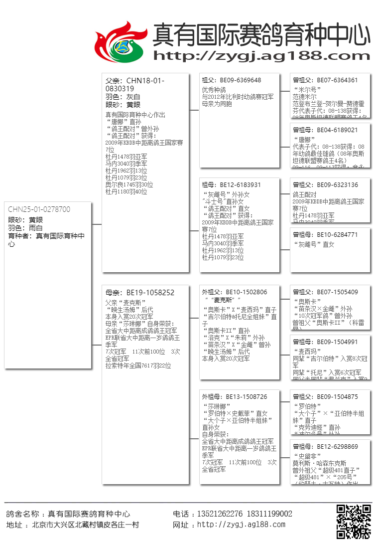 【在這三座金礦還未被世人發(fā)現(xiàn)之前,真有國際就第一時間把高品質(zhì)的鴿子帶到了國內(nèi),取得了空前的發(fā)揮。近幾年大家才逐漸認(rèn)識這幾位大師鴿子的魅力。請記!當(dāng)任何商業(yè)鴿舍進(jìn)入炒作后期的時候,他的鴿子質(zhì)量與價值都會急劇下降,即便是詹森兄弟也難免于此。所以引進(jìn)這家鴿舍最巔峰時期的鴿子,得以延續(xù),才是真有國際成功的致勝法寶。】