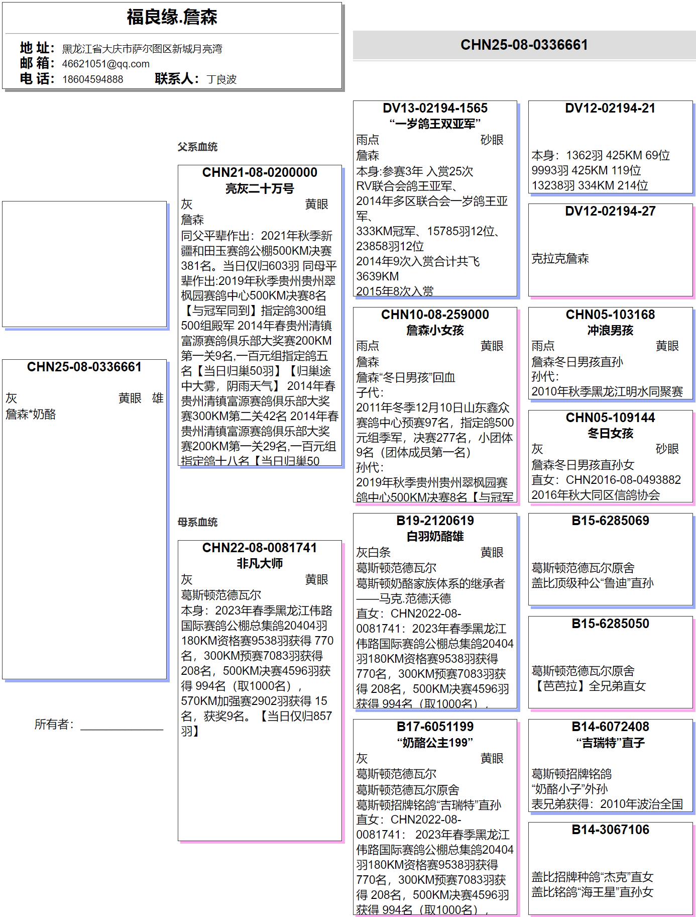 | 1602180 | 詹森鴿王雙亞軍/詹森019 | ¥1400元 | 3次 |