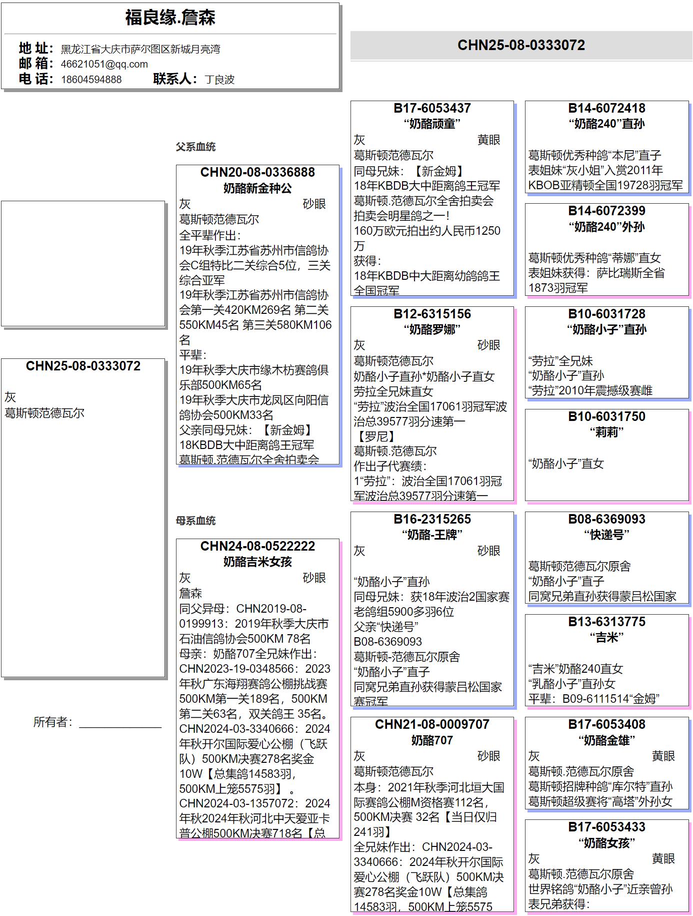 曾外祖母:B17-6053433 葛斯頓招牌種鴿