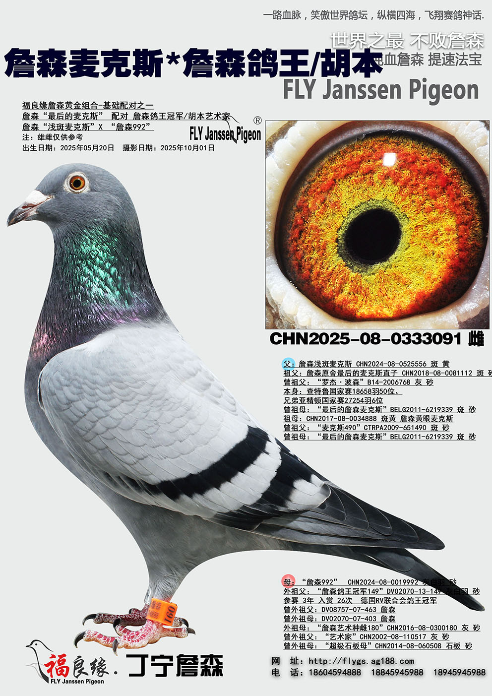 - 血統(tǒng):詹森麥克斯*詹森鴿王/胡本