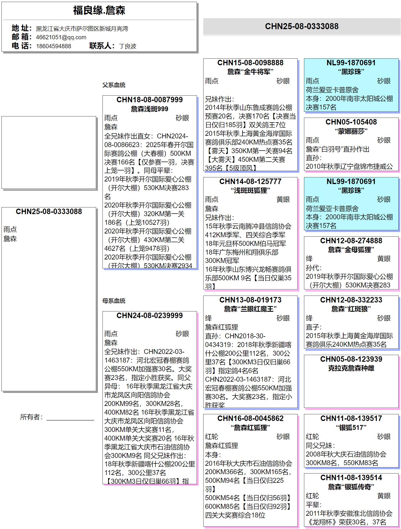 | 1602178 | 詹森鴿王雙亞軍/奶酪9名 | ¥1200元 | 2次 |