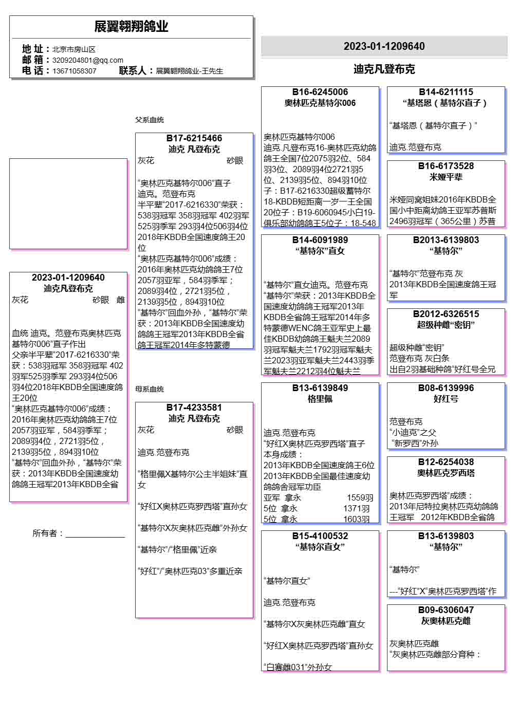 - 當(dāng)前查看拍賣(mài)鴿:迪克范登布克奧林匹克006直子作出640