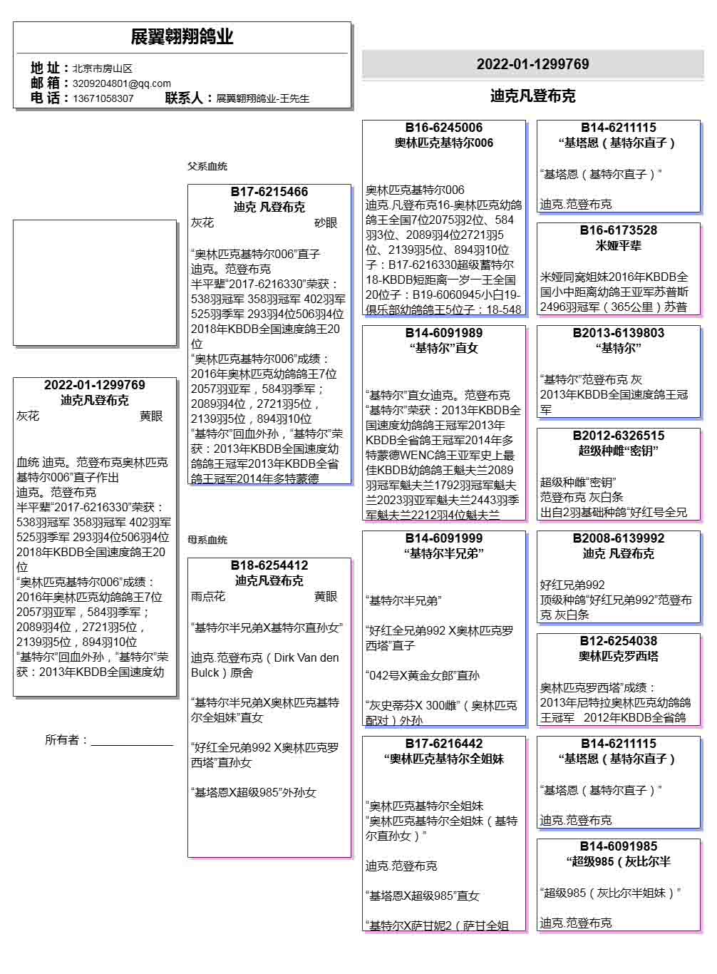- 當前查看拍賣鴿:迪克范登布克奧林匹克006直子作出769