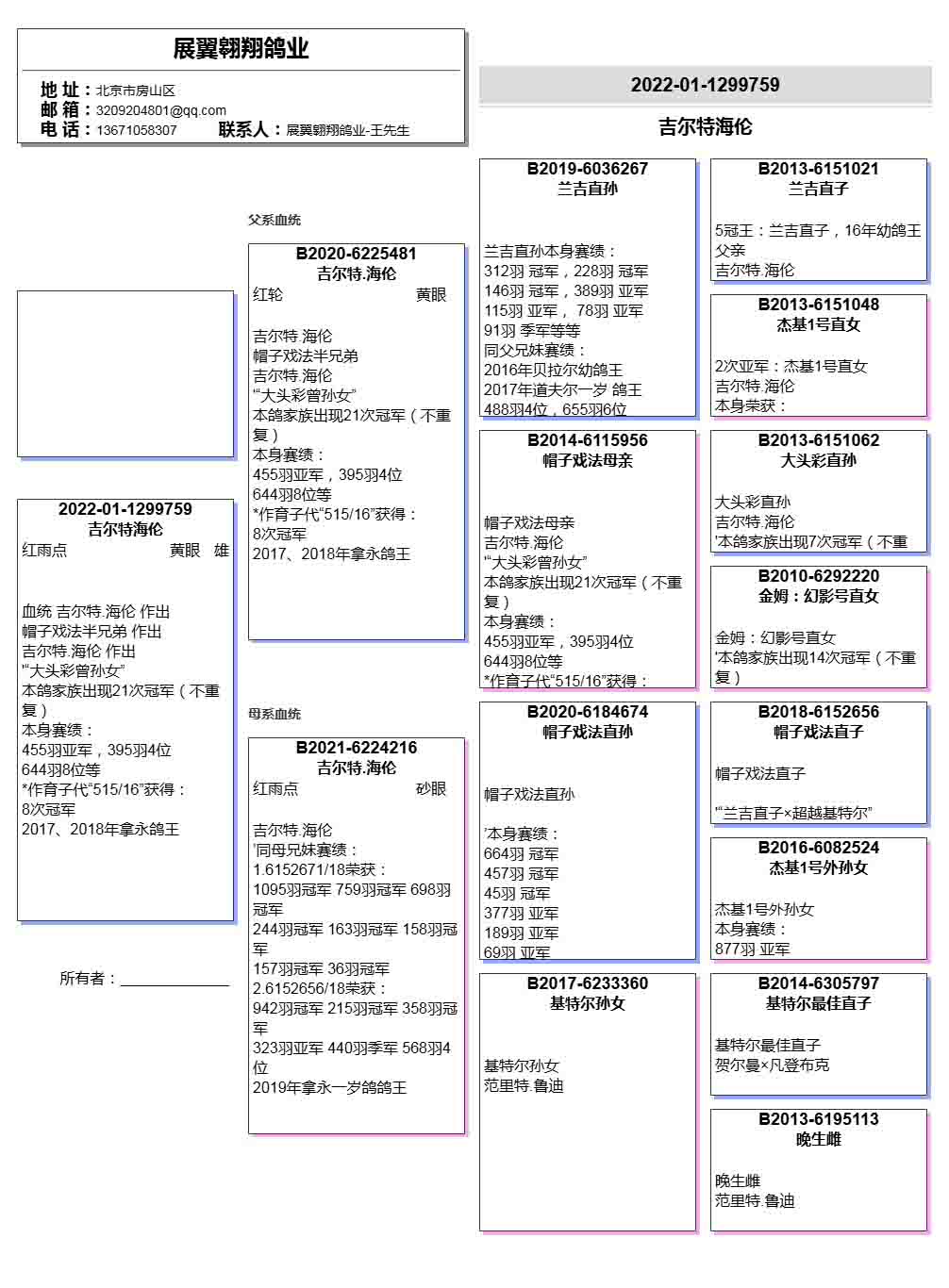 - 當(dāng)前查看拍賣(mài)鴿:海倫吉爾特帽子戲法近親回血作出759
