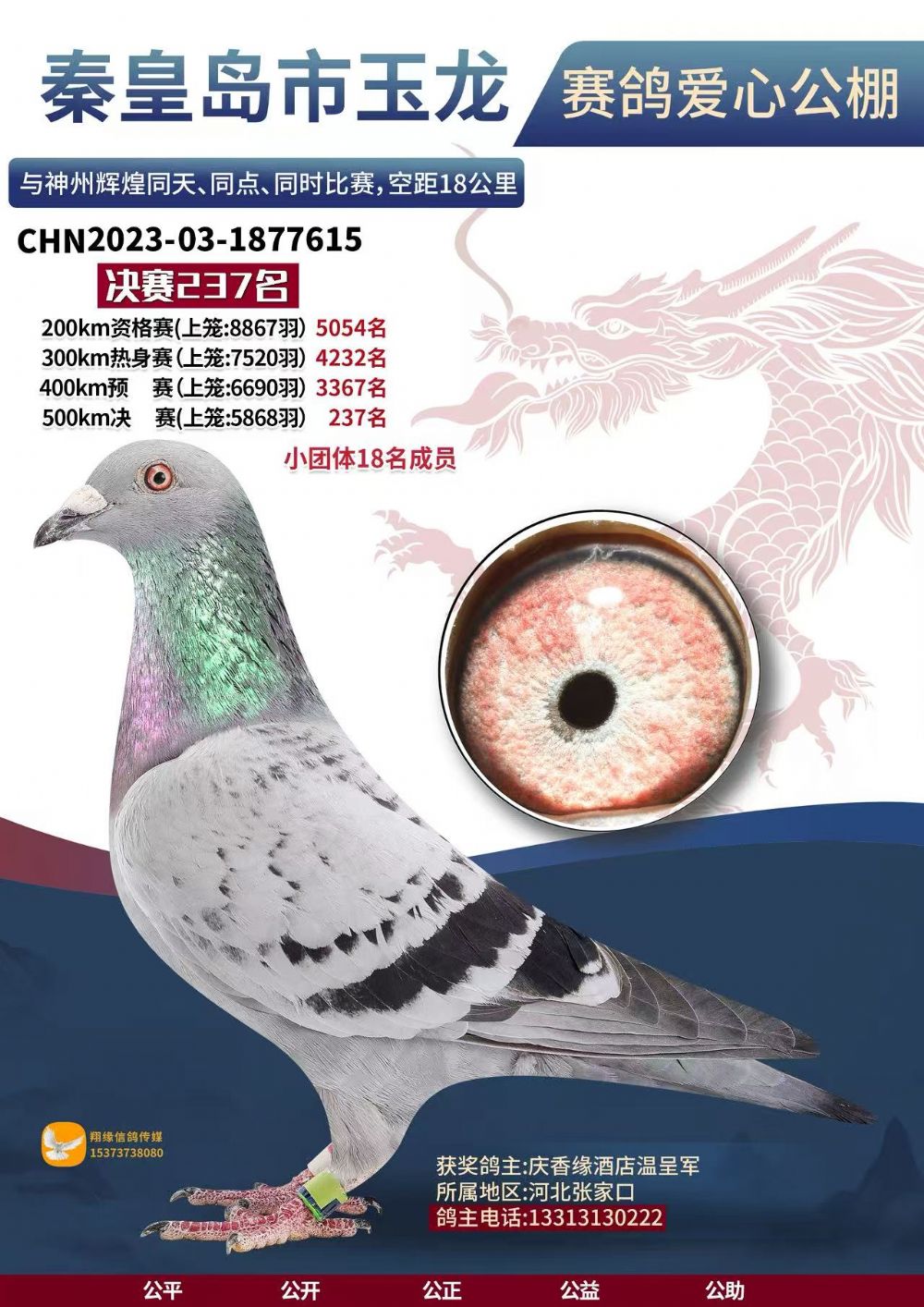 秦皇島玉龍愛心賽鴿公棚500公里決賽237名;