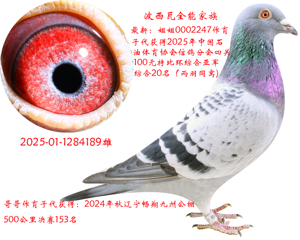 直女2021-33-000247作出子代:獲得2025年中國石油體育協(xié)會信鴿分會四關(guān)100元特比環(huán)綜合亞軍,綜合20名(兩羽同窩)