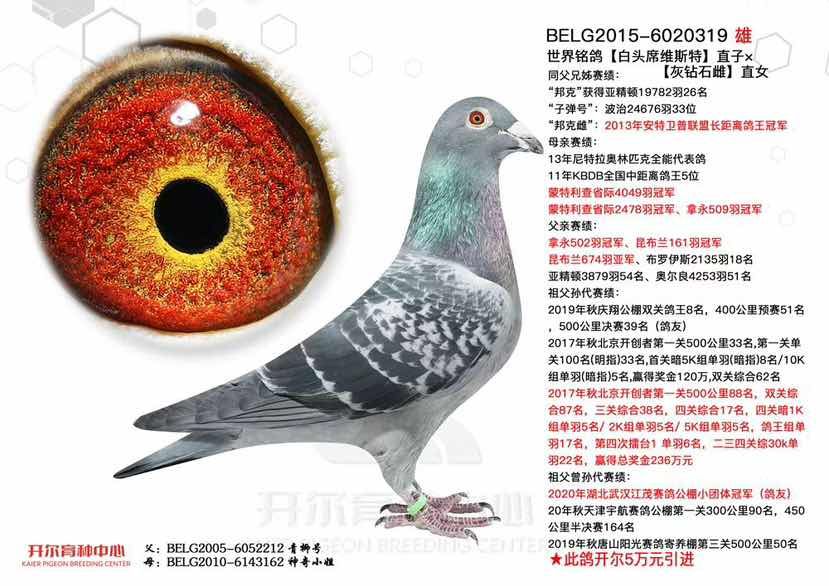 頂級賽鴿、種鴿,本身獲得:
