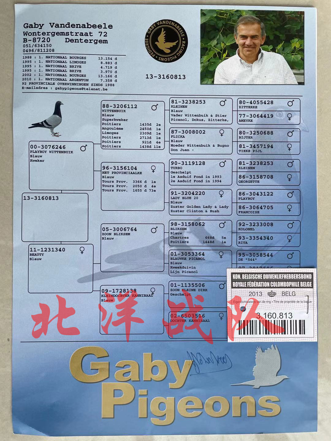 蓋比享譽(yù)世界的頂級(jí)銘鴿,本身榮獲: