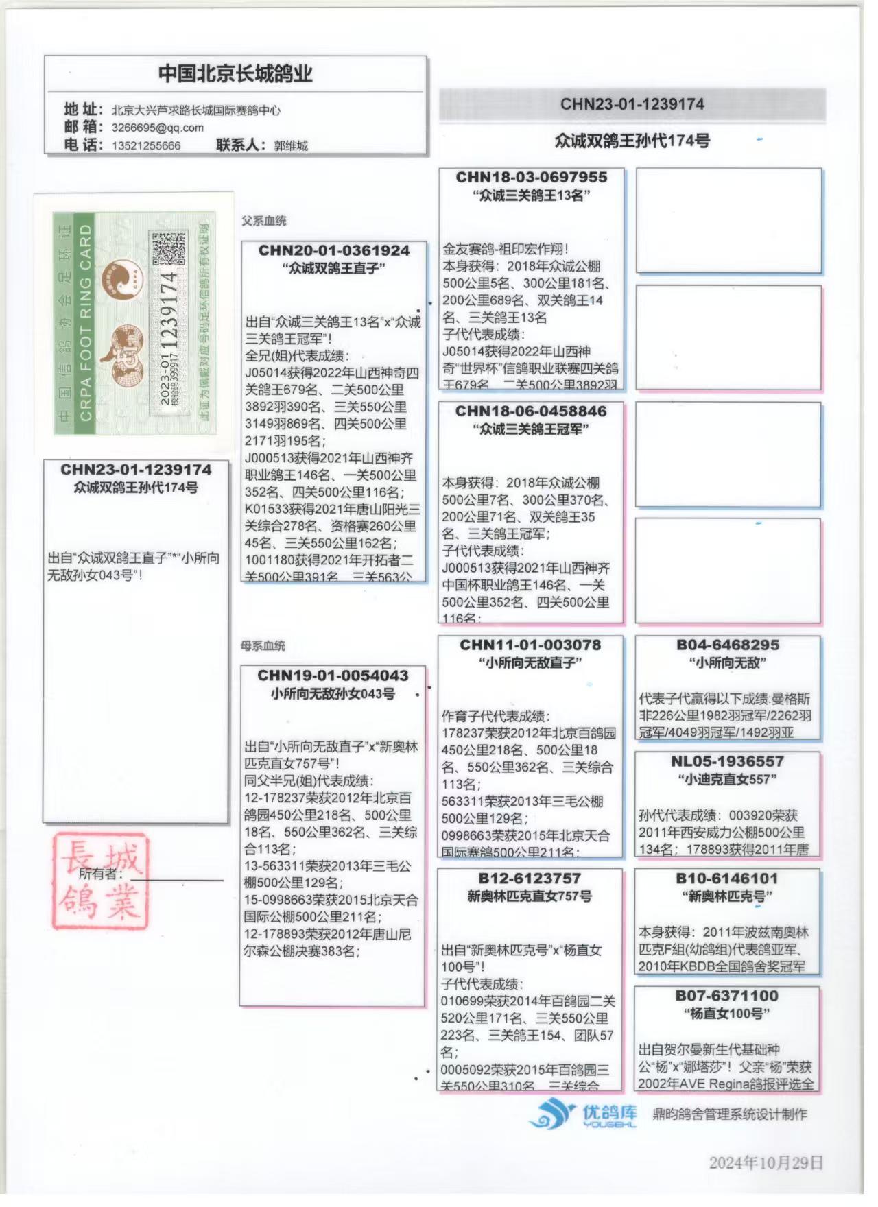 長(zhǎng)城:眾誠雙鴿王X所向無敵、利奧、小迪克174