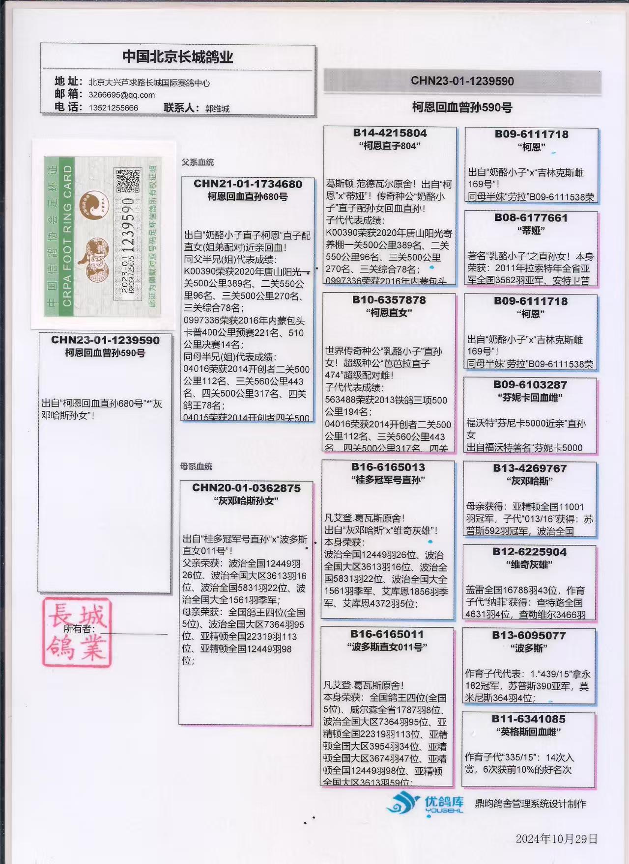 注明:5年以上的老鴿子更換環(huán)境有可能造成不能作育,請你謹慎出價