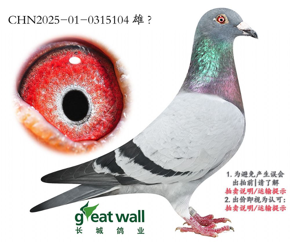 因拍賣鴿均是未做育過(guò)的種鴿或幼鴿,圖內(nèi)所標(biāo)雌雄僅供參考,實(shí)際性別已實(shí)物為準(zhǔn)。