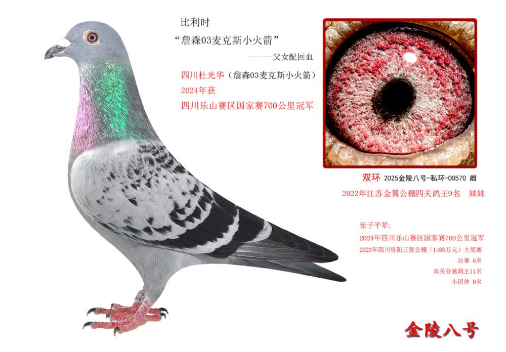“金陵八號(hào)”鴿業(yè)再次提供“俊超”系幼鴿(由喬思托內(nèi)、詹森、桑杰士、紅卡多、福洛英格斯、魯?shù)揽死⒖挤蚵、迪盧速霸龍、佛卡門、羅伯特、白衣殺手灰鷹、紅公系、電腦號(hào)等組成)。