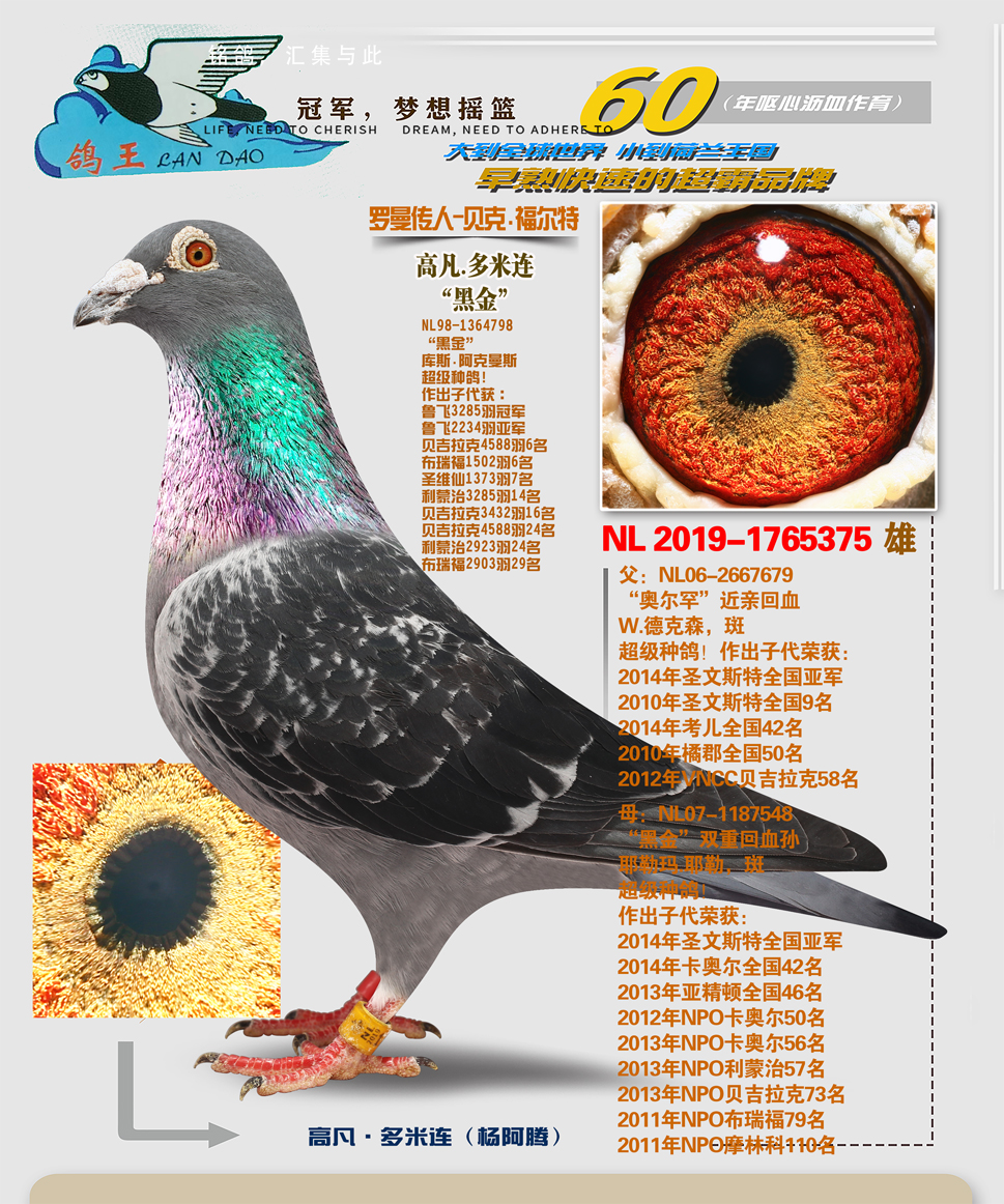 感謝齊魯良父子鴿業(yè)劉總支援巴賽羅那血統(tǒng)配我家彼得曼德斯血統(tǒng),在今年四關(guān)鴿王大賽斬獲5名,此鴿也是去年800特比小號(hào)只取10名的情況下飛進(jìn)10名,獲獎(jiǎng)金一萬元!再次感謝劉總。!