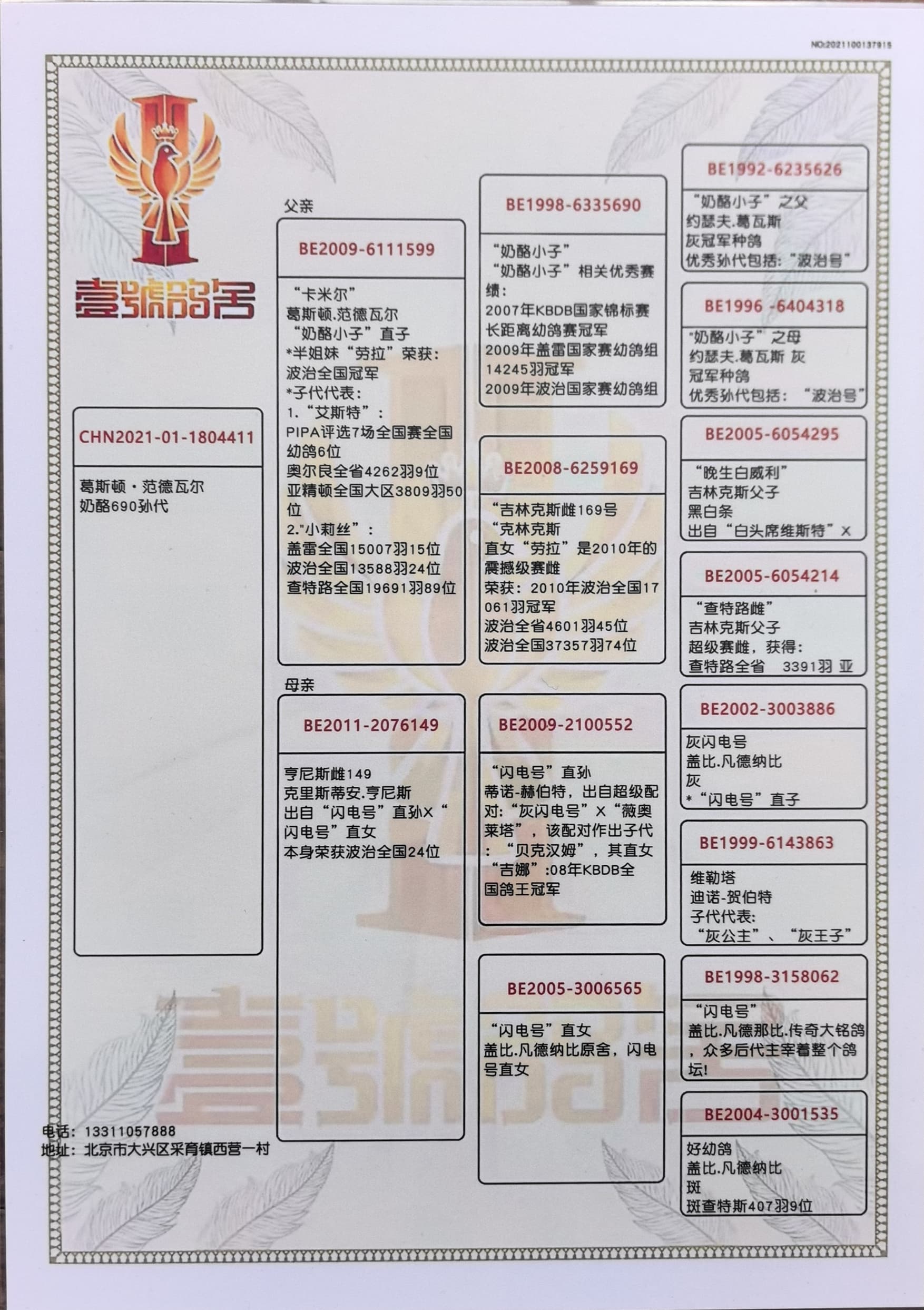 - 當(dāng)前查看拍賣鴿:北京壹號鴿舍葛斯頓·范德瓦爾‘奶酪690