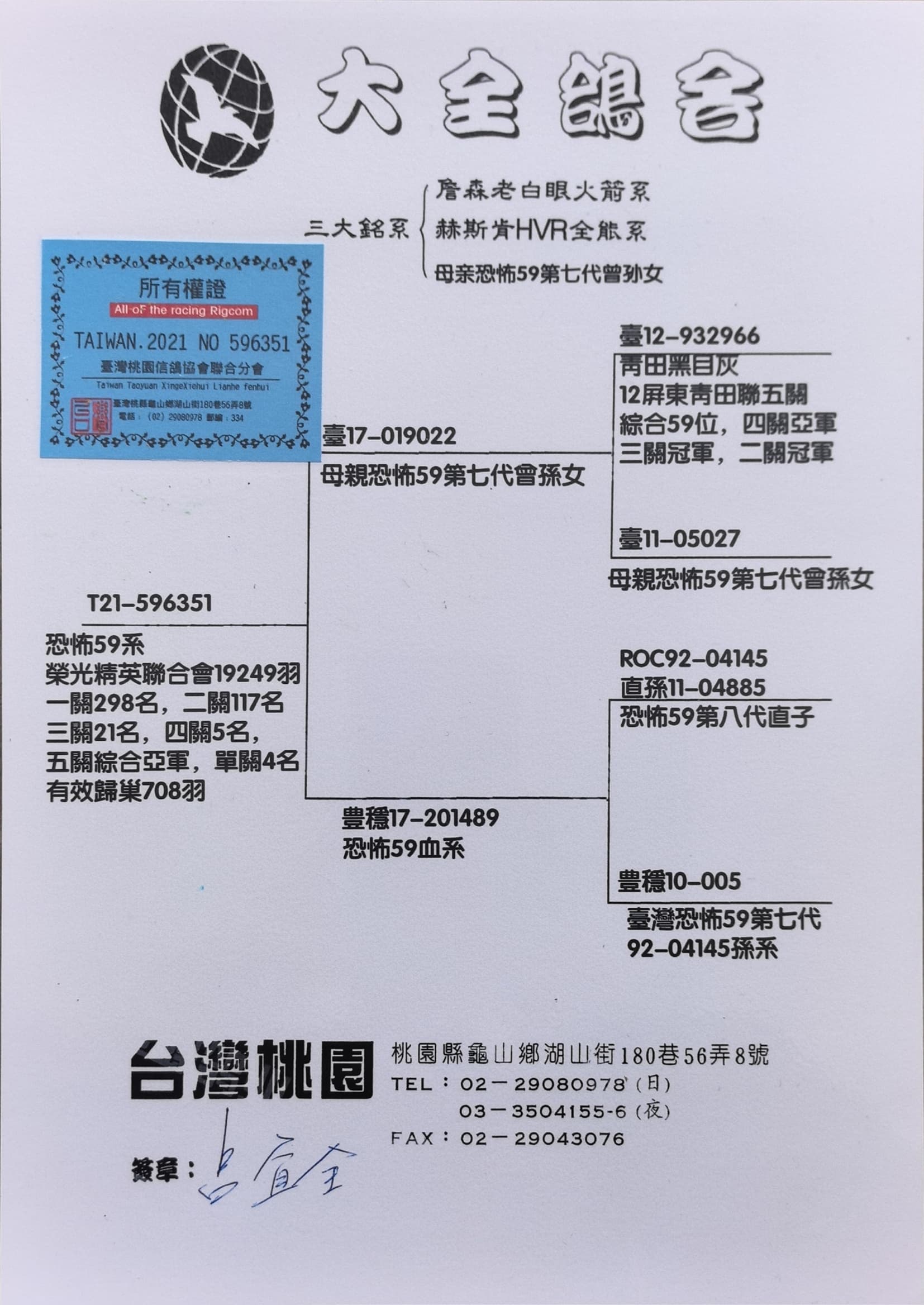 - 當(dāng)前查看拍賣鴿:臺灣大全鴿舍作育恐怖59血系