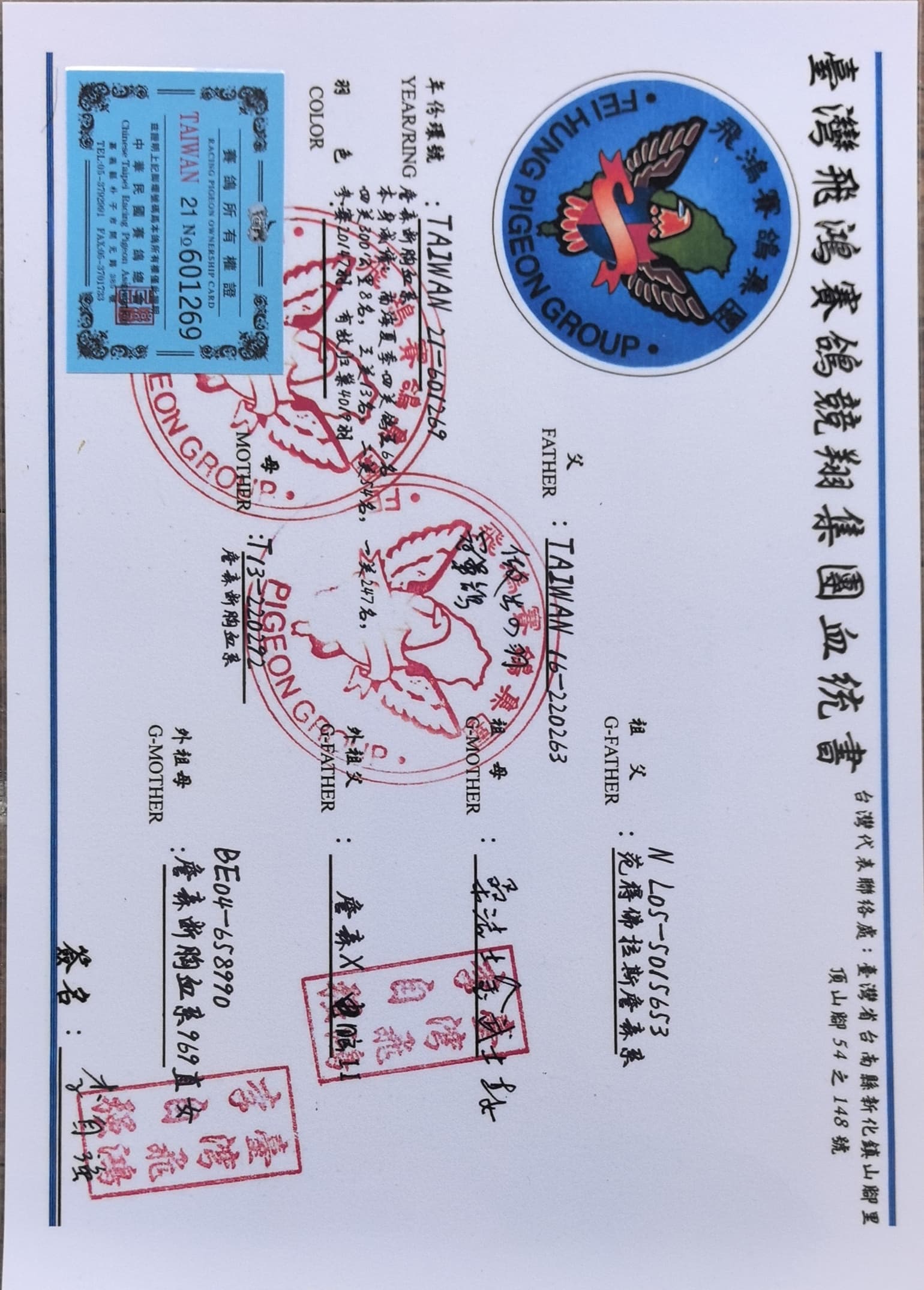 - 當(dāng)前查看拍賣鴿:臺(tái)灣飛鴻賽鴿競翔作育詹森斷胸血系