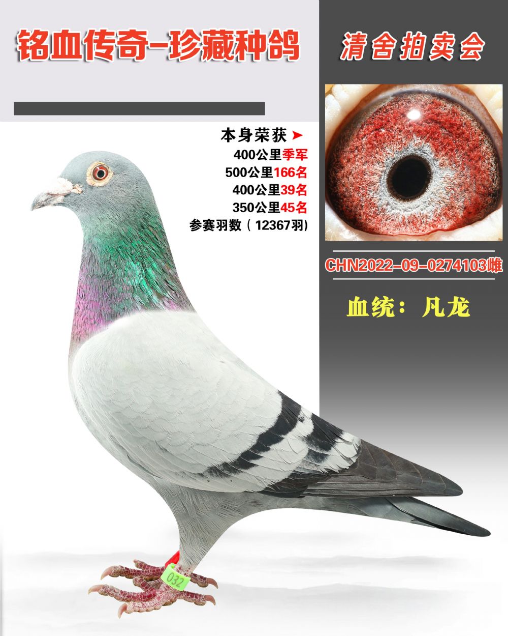 - 當前查看拍賣鴿:血統(tǒng):凡龍本身榮獲:400公里季軍