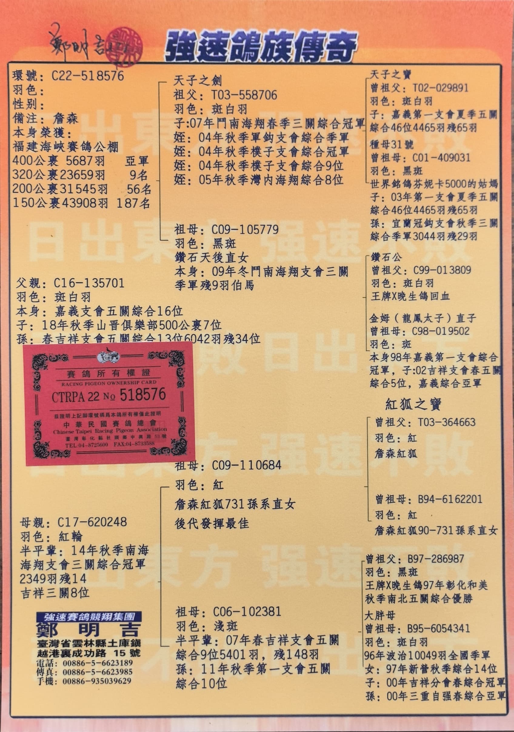 - 當(dāng)前查看拍賣鴿:臺灣強(qiáng)速鴿族“天子之劍’
