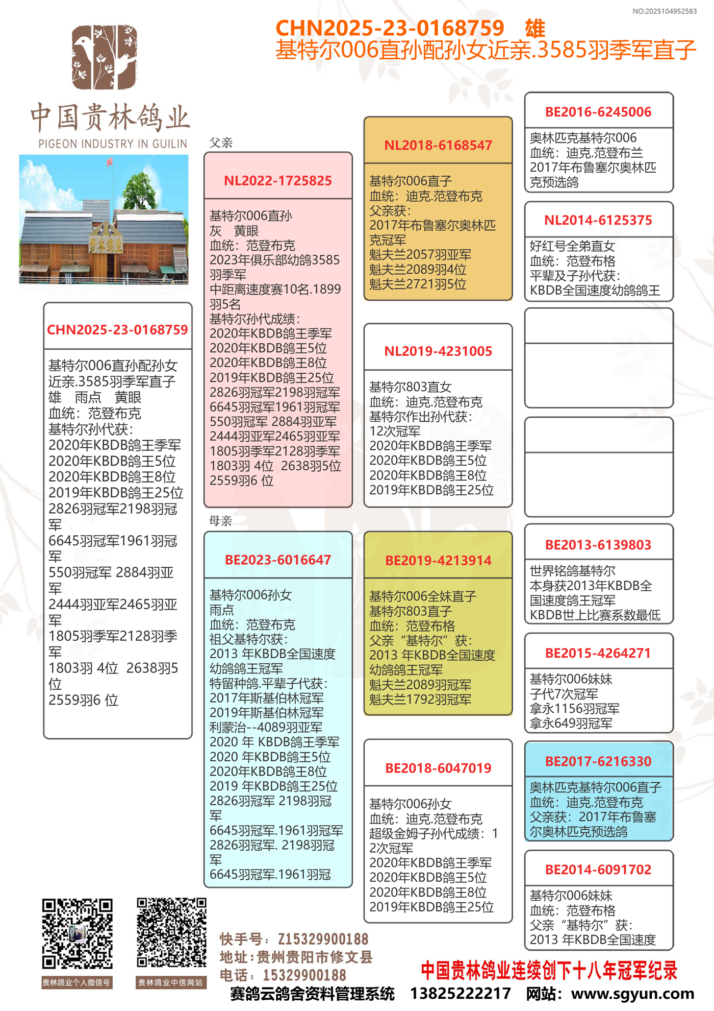 | 1612443 | 開爾公棚25名配北京惠翔公棚冠軍妹妹.平輩冠亞軍多羽 | ¥800元 | 0次 |