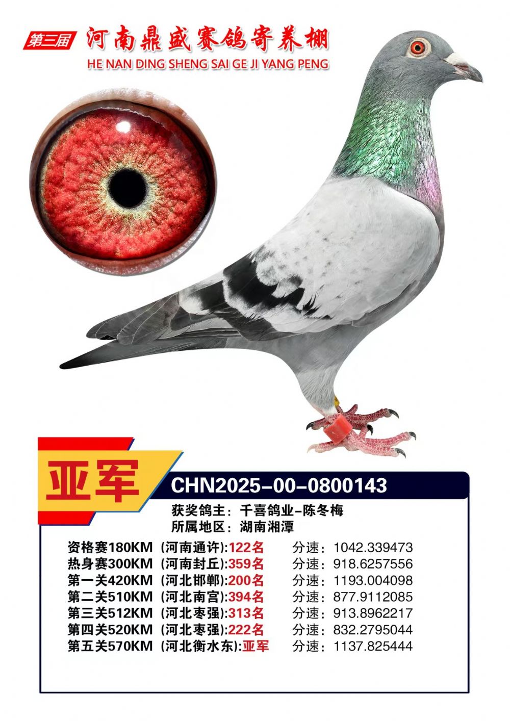 | 1614647 | 河南鼎盛五關綜合鴿王加站賽季軍 | ¥1600元 | 4次 |
