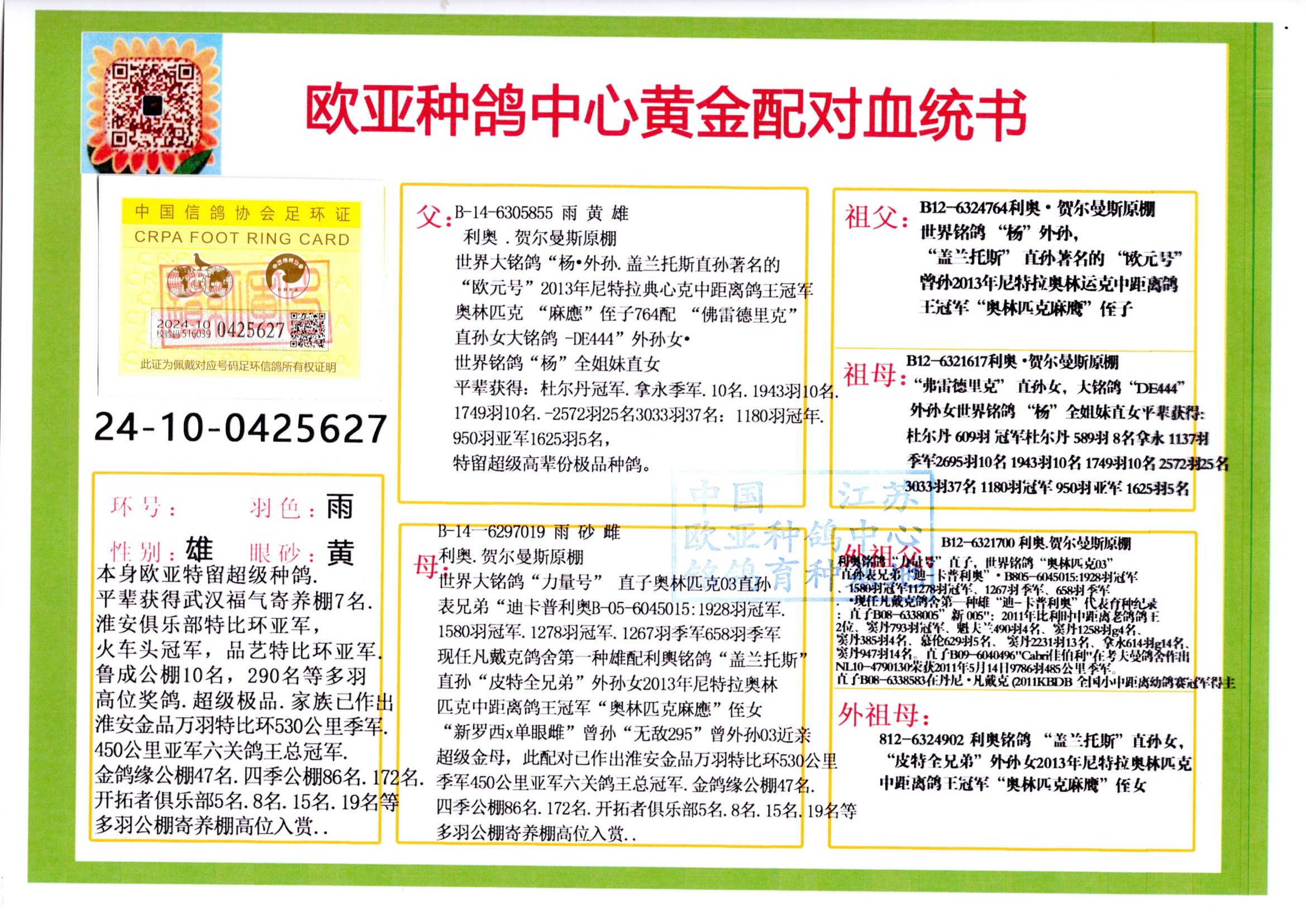 24年秋南京特比環(huán)歐亞榮獲大團(tuán)體冠軍.小團(tuán)體冠軍551公里大特比13名.14名.16名.19名.20名.21名.24名.26名.27名.28名.42名.52名.54名.57名.65名.66名.68名.70名.71名.72名.74名.76名.80名.82名.83名.84名.85名.86名.90名.92名.110名.116名.121名.122名.128名.131名.158名.161名.164名.165名.166名.172名.174名.177名.182名.195名.196名.201名.205名.208名.210名.216名.253名.269名.275名.276名.294名.296名.299名,,24年秋云南天南銅都公棚決賽415名.天南銅都小棚決賽409名.云南玉活公棚決賽102名.490名.團(tuán)體32名上籠二羽進(jìn)二羽,天南銅都大棚506公里決賽445名。熱烈祝賀河北省巨鹿縣李蘭生老師用歐亞泰山號(hào)血系連續(xù)十一年奪冠軍,河北省國(guó)家賽冠軍.全國(guó)季軍等多次前十名高位,揚(yáng)州王軍王總用歐亞利奧24年春季獲山東翔宇公棚決賽33名蓋比53名。南京劉正龍劉總用歐亞蓋比獲得24年秋山東濰坊國(guó)際公棚決賽42名.精英賽30名.三關(guān)鴿王71名.決賽86名.加站賽16名.南京市特比環(huán)A組鴿王9名.B組鴿王5名.6名.C組鴿王5名.精英賽冠軍4名.技能賽A組冠軍4名.5名.秦淮區(qū)特比環(huán)榮獲15名.46名.48名.87名。四川西昌徐亮徐總用歐亞利奧獲得涼山州聚友決賽177名.第二關(guān)亞軍雙關(guān)鴿王19名.三關(guān)鴿王105名.云南豪庭公棚決賽603名。熱烈祝賀24年四川重慶翔園鴿舍用歐亞泰山號(hào)榮獲春季400公里冠軍.秋季500公里冠軍,河北王總用詹森X利奧獲得千羽千翔公棚400公里冠軍,廣東蔡楷煥榮獲24年秋愛(ài)好者 賽鴿俱樂(lè)部三關(guān)鴿王季軍.一關(guān)420公里99名.二關(guān)450公里11名.三關(guān)520公里32名.單關(guān)季軍.7名.12名,江西李衛(wèi)興榮獲貴州紅楓公棚8名.共翔俱樂(lè)部寄養(yǎng)棚四關(guān)綜合鴿王30名.一關(guān)400公里78名.二關(guān)500公里55名.三關(guān)520公里37名.四關(guān)500公里57名.同父母獲公棚18名.雷鳴獲得武漢黃浦育翔中心冠軍,四川陳文獲得四川明鴻俱樂(lè)部300公里夢(mèng)幻2名.3名.4名.9名.10名.13名.14名.15名.31名.34名.40名.41名.42名.43名.69名.71名.72名.73名.74名.94名.95名.97名.98名.99名.419公里決賽榮獲總冠軍7名.總共歸巢9羽,四川徐亮獲豪庭決賽603名,山西鄭勇獲得山西泰鑫公棚決賽255名詹森紅狐,熱烈祝賀馬總獲得開(kāi)爾(飛躍隊(duì))決賽9名獲獎(jiǎng)金1310000萬(wàn)元.第一關(guān)52名,天津津福資賽180公里96名.獲獎(jiǎng)金429543萬(wàn)元,歐亞支持全國(guó)鴿友24年秋多人報(bào)喜 祝大家取得更好成績(jī),給歐亞報(bào)喜鴿友歐亞決定給每人贈(zèng)送一羽超級(jí)種鴿。歐亞俱樂(lè)部特比環(huán)多關(guān)鴿王成績(jī):15年秋淮安特比環(huán)黑色星期一全會(huì)上籠9700多羽,當(dāng)天無(wú)鴿歸巢,第二天全會(huì)歸巢357羽,本舍歸巢158羽.前十名八羽.前一百名歸巢57羽,16年春季獲五關(guān)鴿王總冠軍,總亞軍四名.六名.七名.九名.十名.晶藝俱樂(lè)部520公里冠亞季軍5名.6名.7名.9名.11名等,火車(chē)頭冠軍.季軍6名.8名.9名.10名,16年秋晶藝俱樂(lè)部特比環(huán)520公里亞軍.季軍4名.6名.7名.9名,15年春南京白下特比環(huán)冠軍.亞軍.季軍6名.7名.8名.9名.10名.指定鴿A B組獲得冠軍.亞軍.季軍4名.5名.,17年淮安特比環(huán)亞軍.4名.5名.7名.8名.10名.六關(guān)鴿王總冠軍.4名.6名.9名.10名,寄養(yǎng)棚宿遷劉總20羽特比環(huán)獲冠軍.季軍.4名.7名.8名.9名等。18年榮獲萬(wàn)羽特比環(huán)六關(guān)鴿王總冠軍.總亞軍.總季軍.6名.8名.十名.單關(guān)四羽冠軍.二羽亞軍.四羽季軍.前十名27羽。19年秋萬(wàn)羽特比環(huán)六關(guān)鴿王總亞軍.總季軍.5名.8名等,單關(guān)二羽冠軍.三羽亞軍.一羽季軍前十名31羽。20年秋淮安市鴿會(huì)四關(guān)特比環(huán)大賽風(fēng)雨無(wú)阻鴿王亞軍.鴿王六名,金品俱樂(lè)部萬(wàn)羽特比環(huán)六關(guān)鴿王總冠軍,總亞軍.四名.五名.六名.七名.八名.十名.前二百名鴿王35羽,單關(guān)冠亞季軍前十名四十多羽,火車(chē)頭五關(guān)鴿王季軍.六名.八名.前二百名鴿王十七羽。20年春榮獲淮安五區(qū)一市四關(guān)鴿王總冠軍.亞軍.四名.八名.九名。21年秋榮獲金品萬(wàn)羽特比環(huán)大賽六關(guān)鴿王總亞軍.總季軍.四名.七名.九名.十名.單關(guān)冠亞軍季軍前十名三十多羽。火車(chē)頭協(xié)會(huì)鴿王六名.七名.十名.單關(guān)前十名十七羽。22年秋榮獲鴿王總冠軍.總亞軍.5名.7名.8名.9名.11名.單關(guān)冠亞季軍前十名三十多羽,第一關(guān)單關(guān)前二百名四十多羽,第二關(guān)前二百名三十多羽,第三關(guān)前二百名四十多羽,第四關(guān)前二百名四十多羽,第五關(guān)前一百名53羽。23年秋榮獲鴿王季軍.五名.八名.十名.13名.17名.20名.27名等多羽鴿王.單關(guān)前十名二十多羽。公棚.寄養(yǎng)棚部分成績(jī):16年秋寧夏黃河公棚總冠軍電腦戈馬力指定通炮冠軍,17年送八羽參賽獲得鴿王八名進(jìn)獎(jiǎng)四名,支持韓總榮獲八名。支持鴿友榮獲寧夏中衛(wèi)公棚決賽總冠軍.精英賽冠軍,支持18年寧夏黃河公棚決賽冠軍詹森X泰山。安徽鼎博寄養(yǎng)棚院內(nèi)外四關(guān)鴿王總冠軍.鴿王十七名.三十七名同窩,鴿王39名.42名.58名.67名。18年山東公棚預(yù)賽冠軍.決賽65名.送八羽進(jìn)獎(jiǎng)五羽.指定獲奔馳汽車(chē)一輛。支持鴿友獲得云南藍(lán)云公棚冠軍.蓋比X佛卡門(mén)。支