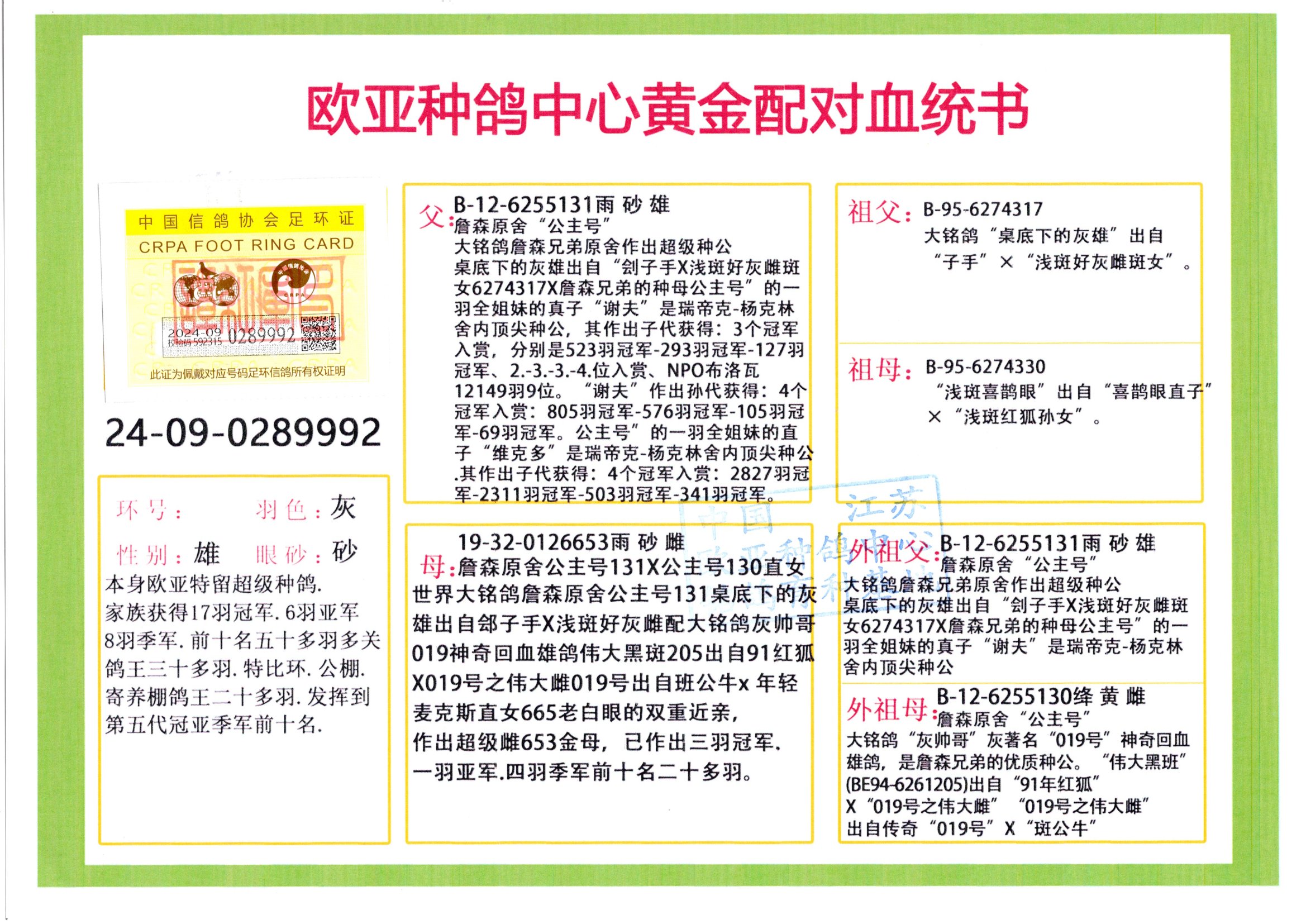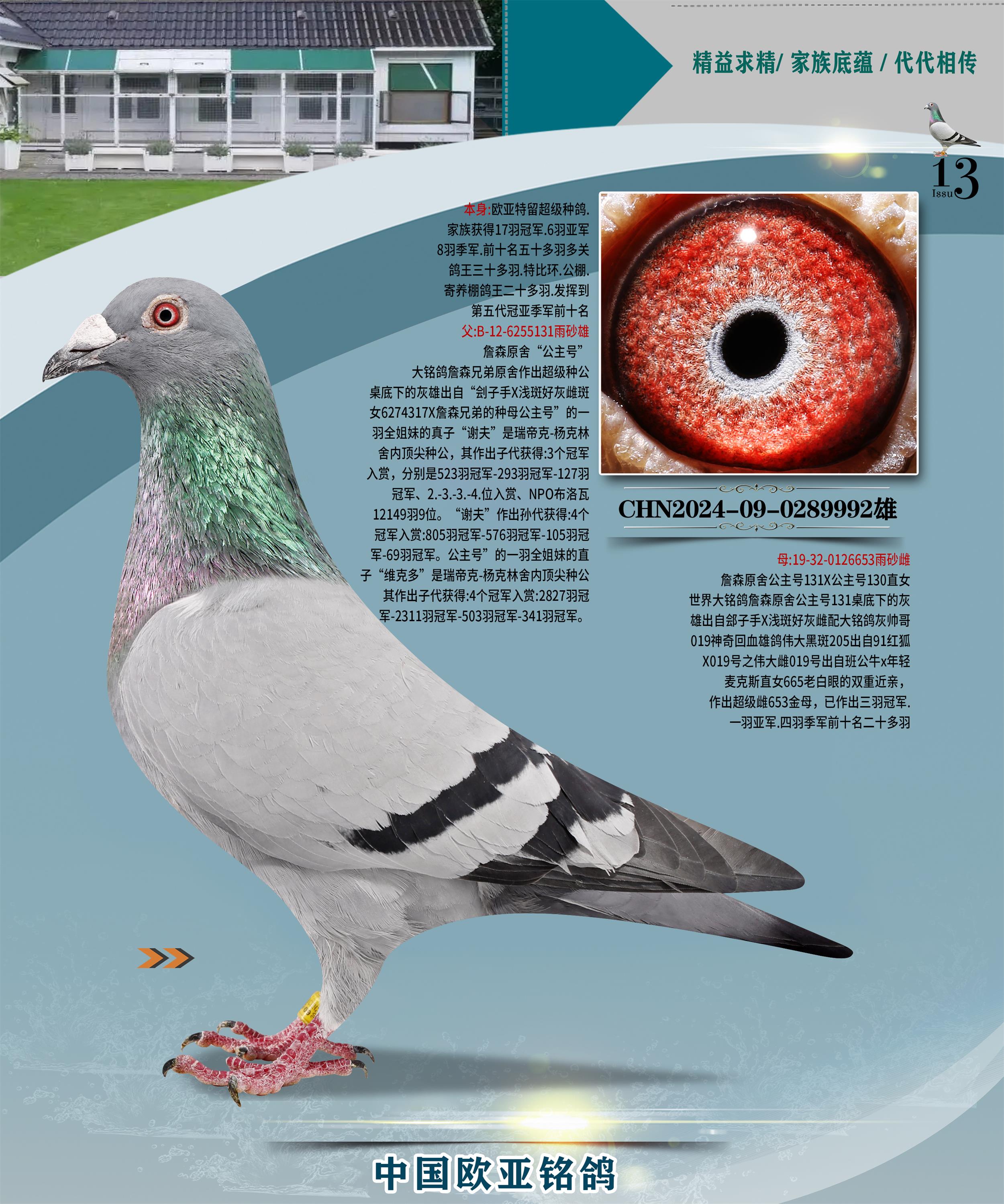 24年秋南京特比環(huán)歐亞榮獲大團(tuán)體冠軍.小團(tuán)體冠軍551公里大特比13名.14名.16名.19名.20名.21名.24名.26名.27名.28名.42名.52名.54名.57名.65名.66名.68名.70名.71名.72名.74名.76名.80名.82名.83名.84名.85名.86名.90名.92名.110名.116名.121名.122名.128名.131名.158名.161名.164名.165名.166名.172名.174名.177名.182名.195名.196名.201名.205名.208名.210名.216名.253名.269名.275名.276名.294名.296名.299名,,24年秋云南天南銅都公棚決賽415名.天南銅都小棚決賽409名.云南玉活公棚決賽102名.490名.團(tuán)體32名上籠二羽進(jìn)二羽,天南銅都大棚506公里決賽445名。熱烈祝賀河北省巨鹿縣李蘭生老師用歐亞泰山號(hào)血系連續(xù)十一年奪冠軍,河北省國(guó)家賽冠軍.全國(guó)季軍等多次前十名高位,揚(yáng)州王軍王總用歐亞利奧24年春季獲山東翔宇公棚決賽33名蓋比53名。南京劉正龍劉總用歐亞蓋比獲得24年秋山東濰坊國(guó)際公棚決賽42名.精英賽30名.三關(guān)鴿王71名.決賽86名.加站賽16名.南京市特比環(huán)A組鴿王9名.B組鴿王5名.6名.C組鴿王5名.精英賽冠軍4名.技能賽A組冠軍4名.5名.秦淮區(qū)特比環(huán)榮獲15名.46名.48名.87名。四川西昌徐亮徐總用歐亞利奧獲得涼山州聚友決賽177名.第二關(guān)亞軍雙關(guān)鴿王19名.三關(guān)鴿王105名.云南豪庭公棚決賽603名。熱烈祝賀24年四川重慶翔園鴿舍用歐亞泰山號(hào)榮獲春季400公里冠軍.秋季500公里冠軍,河北王總用詹森X利奧獲得千羽千翔公棚400公里冠軍,廣東蔡楷煥榮獲24年秋愛好者 賽鴿俱樂(lè)部三關(guān)鴿王季軍.一關(guān)420公里99名.二關(guān)450公里11名.三關(guān)520公里32名.單關(guān)季軍.7名.12名,江西李衛(wèi)興榮獲貴州紅楓公棚8名.共翔俱樂(lè)部寄養(yǎng)棚四關(guān)綜合鴿王30名.一關(guān)400公里78名.二關(guān)500公里55名.三關(guān)520公里37名.四關(guān)500公里57名.同父母獲公棚18名.雷鳴獲得武漢黃浦育翔中心冠軍,四川陳文獲得四川明鴻俱樂(lè)部300公里夢(mèng)幻2名.3名.4名.9名.10名.13名.14名.15名.31名.34名.40名.41名.42名.43名.69名.71名.72名.73名.74名.94名.95名.97名.98名.99名.419公里決賽榮獲總冠軍7名.總共歸巢9羽,四川徐亮獲豪庭決賽603名,山西鄭勇獲得山西泰鑫公棚決賽255名詹森紅狐,熱烈祝賀馬總獲得開爾(飛躍隊(duì))決賽9名獲獎(jiǎng)金1310000萬(wàn)元.第一關(guān)52名,天津津福資賽180公里96名.獲獎(jiǎng)金429543萬(wàn)元,歐亞支持全國(guó)鴿友24年秋多人報(bào)喜 祝大家取得更好成績(jī),給歐亞報(bào)喜鴿友歐亞決定給每人贈(zèng)送一羽超級(jí)種鴿。歐亞俱樂(lè)部特比環(huán)多關(guān)鴿王成績(jī):15年秋淮安特比環(huán)黑色星期一全會(huì)上籠9700多羽,當(dāng)天無(wú)鴿歸巢,第二天全會(huì)歸巢357羽,本舍歸巢158羽.前十名八羽.前一百名歸巢57羽,16年春季獲五關(guān)鴿王總冠軍,總亞軍四名.六名.七名.九名.十名.晶藝俱樂(lè)部520公里冠亞季軍5名.6名.7名.9名.11名等,火車頭冠軍.季軍6名.8名.9名.10名,16年秋晶藝俱樂(lè)部特比環(huán)520公里亞軍.季軍4名.6名.7名.9名,15年春南京白下特比環(huán)冠軍.亞軍.季軍6名.7名.8名.9名.10名.指定鴿A B組獲得冠軍.亞軍.季軍4名.5名.,17年淮安特比環(huán)亞軍.4名.5名.7名.8名.10名.六關(guān)鴿王總冠軍.4名.6名.9名.10名,寄養(yǎng)棚宿遷劉總20羽特比環(huán)獲冠軍.季軍.4名.7名.8名.9名等。18年榮獲萬(wàn)羽特比環(huán)六關(guān)鴿王總冠軍.總亞軍.總季軍.6名.8名.十名.單關(guān)四羽冠軍.二羽亞軍.四羽季軍.前十名27羽。19年秋萬(wàn)羽特比環(huán)六關(guān)鴿王總亞軍.總季軍.5名.8名等,單關(guān)二羽冠軍.三羽亞軍.一羽季軍前十名31羽。20年秋淮安市鴿會(huì)四關(guān)特比環(huán)大賽風(fēng)雨無(wú)阻鴿王亞軍.鴿王六名,金品俱樂(lè)部萬(wàn)羽特比環(huán)六關(guān)鴿王總冠軍,總亞軍.四名.五名.六名.七名.八名.十名.前二百名鴿王35羽,單關(guān)冠亞季軍前十名四十多羽,火車頭五關(guān)鴿王季軍.六名.八名.前二百名鴿王十七羽。20年春榮獲淮安五區(qū)一市四關(guān)鴿王總冠軍.亞軍.四名.八名.九名。21年秋榮獲金品萬(wàn)羽特比環(huán)大賽六關(guān)鴿王總亞軍.總季軍.四名.七名.九名.十名.單關(guān)冠亞軍季軍前十名三十多羽;疖囶^協(xié)會(huì)鴿王六名.七名.十名.單關(guān)前十名十七羽。22年秋榮獲鴿王總冠軍.總亞軍.5名.7名.8名.9名.11名.單關(guān)冠亞季軍前十名三十多羽,第一關(guān)單關(guān)前二百名四十多羽,第二關(guān)前二百名三十多羽,第三關(guān)前二百名四十多羽,第四關(guān)前二百名四十多羽,第五關(guān)前一百名53羽。23年秋榮獲鴿王季軍.五名.八名.十名.13名.17名.20名.27名等多羽鴿王.單關(guān)前十名二十多羽。公棚.寄養(yǎng)棚部分成績(jī):16年秋寧夏黃河公棚總冠軍電腦戈馬力指定通炮冠軍,17年送八羽參賽獲得鴿王八名進(jìn)獎(jiǎng)四名,支持韓總榮獲八名。支持鴿友榮獲寧夏中衛(wèi)公棚決賽總冠軍.精英賽冠軍,支持18年寧夏黃河公棚決賽冠軍詹森X泰山。安徽鼎博寄養(yǎng)棚院內(nèi)外四關(guān)鴿王總冠軍.鴿王十七名.三十七名同窩,鴿王39名.42名.58名.67名。18年山東公棚預(yù)賽冠軍.決賽65名.送八羽進(jìn)獎(jiǎng)五羽.指定獲奔馳汽車一輛。支持鴿友獲得云南藍(lán)云公棚冠軍.蓋比X佛卡門。支持鴿友榮獲云南銀集公棚決賽冠軍