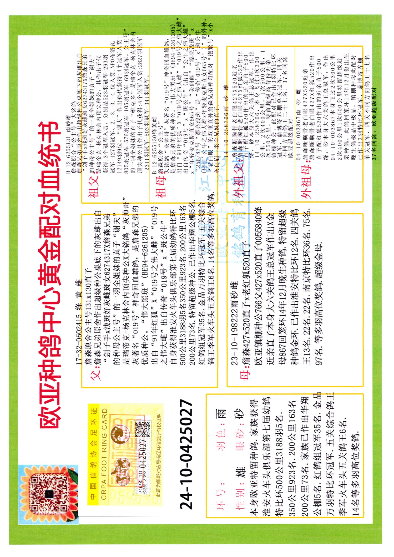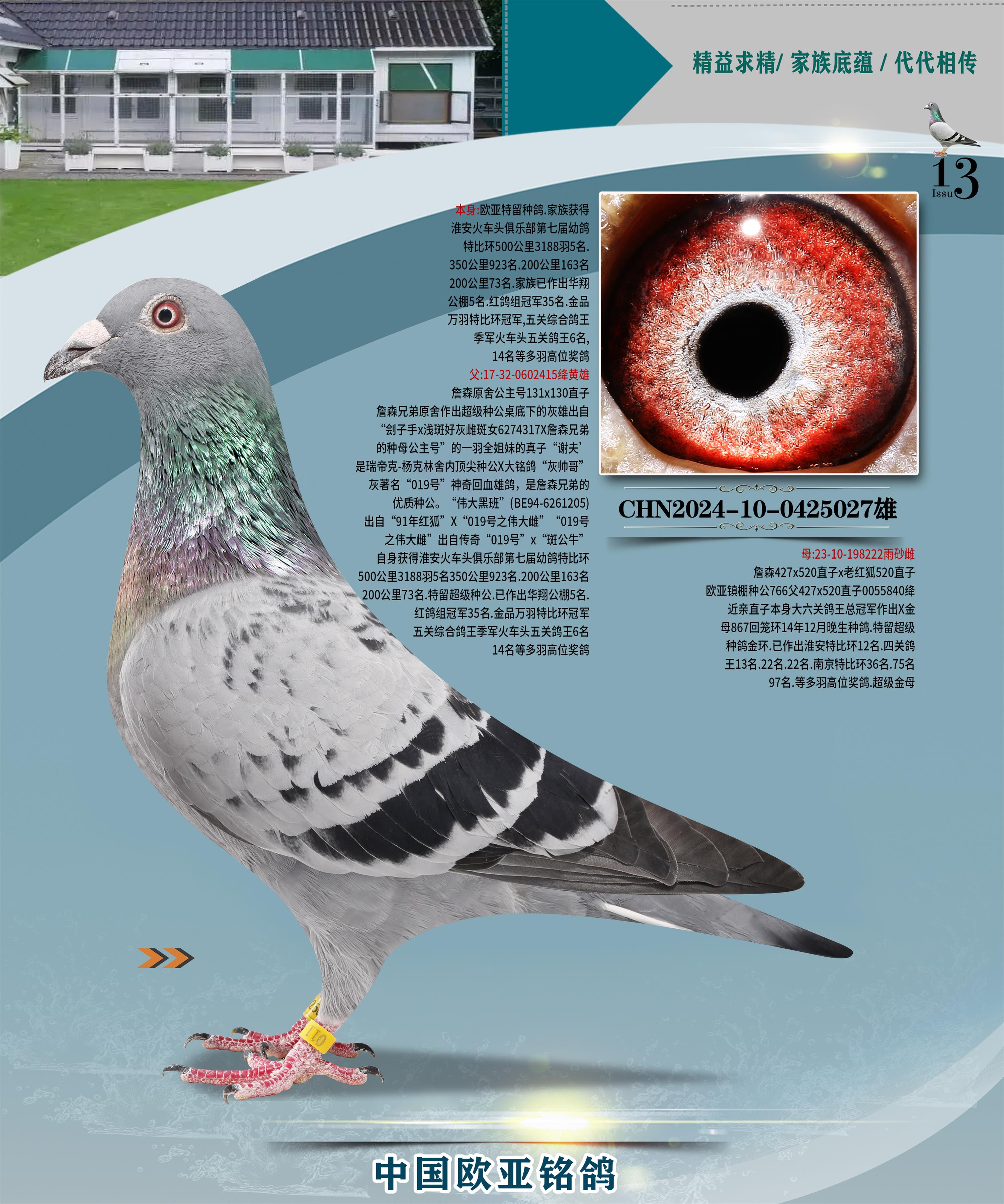 24年秋南京特比環(huán)歐亞榮獲大團(tuán)體冠軍.小團(tuán)體冠軍551公里大特比13名.14名.16名.19名.20名.21名.24名.26名.27名.28名.42名.52名.54名.57名.65名.66名.68名.70名.71名.72名.74名.76名.80名.82名.83名.84名.85名.86名.90名.92名.110名.116名.121名.122名.128名.131名.158名.161名.164名.165名.166名.172名.174名.177名.182名.195名.196名.201名.205名.208名.210名.216名.253名.269名.275名.276名.294名.296名.299名,,24年秋云南天南銅都公棚決賽415名.天南銅都小棚決賽409名.云南玉活公棚決賽102名.490名.團(tuán)體32名上籠二羽進(jìn)二羽,天南銅都大棚506公里決賽445名。熱烈祝賀河北省巨鹿縣李蘭生老師用歐亞泰山號(hào)血系連續(xù)十一年奪冠軍,河北省國(guó)家賽冠軍.全國(guó)季軍等多次前十名高位,揚(yáng)州王軍王總用歐亞利奧24年春季獲山東翔宇公棚決賽33名蓋比53名。南京劉正龍劉總用歐亞蓋比獲得24年秋山東濰坊國(guó)際公棚決賽42名.精英賽30名.三關(guān)鴿王71名.決賽86名.加站賽16名.南京市特比環(huán)A組鴿王9名.B組鴿王5名.6名.C組鴿王5名.精英賽冠軍4名.技能賽A組冠軍4名.5名.秦淮區(qū)特比環(huán)榮獲15名.46名.48名.87名。四川西昌徐亮徐總用歐亞利奧獲得涼山州聚友決賽177名.第二關(guān)亞軍雙關(guān)鴿王19名.三關(guān)鴿王105名.云南豪庭公棚決賽603名。熱烈祝賀24年四川重慶翔園鴿舍用歐亞泰山號(hào)榮獲春季400公里冠軍.秋季500公里冠軍,河北王總用詹森X利奧獲得千羽千翔公棚400公里冠軍,廣東蔡楷煥榮獲24年秋愛(ài)好者 賽鴿俱樂(lè)部三關(guān)鴿王季軍.一關(guān)420公里99名.二關(guān)450公里11名.三關(guān)520公里32名.單關(guān)季軍.7名.12名,江西李衛(wèi)興榮獲貴州紅楓公棚8名.共翔俱樂(lè)部寄養(yǎng)棚四關(guān)綜合鴿王30名.一關(guān)400公里78名.二關(guān)500公里55名.三關(guān)520公里37名.四關(guān)500公里57名.同父母獲公棚18名.雷鳴獲得武漢黃浦育翔中心冠軍,四川陳文獲得四川明鴻俱樂(lè)部300公里夢(mèng)幻2名.3名.4名.9名.10名.13名.14名.15名.31名.34名.40名.41名.42名.43名.69名.71名.72名.73名.74名.94名.95名.97名.98名.99名.419公里決賽榮獲總冠軍7名.總共歸巢9羽,四川徐亮獲豪庭決賽603名,山西鄭勇獲得山西泰鑫公棚決賽255名詹森紅狐,熱烈祝賀馬總獲得開(kāi)爾(飛躍隊(duì))決賽9名獲獎(jiǎng)金1310000萬(wàn)元.第一關(guān)52名,天津津福資賽180公里96名.獲獎(jiǎng)金429543萬(wàn)元,歐亞支持全國(guó)鴿友24年秋多人報(bào)喜 祝大家取得更好成績(jī),給歐亞報(bào)喜鴿友歐亞決定給每人贈(zèng)送一羽超級(jí)種鴿。歐亞俱樂(lè)部特比環(huán)多關(guān)鴿王成績(jī):15年秋淮安特比環(huán)黑色星期一全會(huì)上籠9700多羽,當(dāng)天無(wú)鴿歸巢,第二天全會(huì)歸巢357羽,本舍歸巢158羽.前十名八羽.前一百名歸巢57羽,16年春季獲五關(guān)鴿王總冠軍,總亞軍四名.六名.七名.九名.十名.晶藝俱樂(lè)部520公里冠亞季軍5名.6名.7名.9名.11名等,火車(chē)頭冠軍.季軍6名.8名.9名.10名,16年秋晶藝俱樂(lè)部特比環(huán)520公里亞軍.季軍4名.6名.7名.9名,15年春南京白下特比環(huán)冠軍.亞軍.季軍6名.7名.8名.9名.10名.指定鴿A B組獲得冠軍.亞軍.季軍4名.5名.,17年淮安特比環(huán)亞軍.4名.5名.7名.8名.10名.六關(guān)鴿王總冠軍.4名.6名.9名.10名,寄養(yǎng)棚宿遷劉總20羽特比環(huán)獲冠軍.季軍.4名.7名.8名.9名等。18年榮獲萬(wàn)羽特比環(huán)六關(guān)鴿王總冠軍.總亞軍.總季軍.6名.8名.十名.單關(guān)四羽冠軍.二羽亞軍.四羽季軍.前十名27羽。19年秋萬(wàn)羽特比環(huán)六關(guān)鴿王總亞軍.總季軍.5名.8名等,單關(guān)二羽冠軍.三羽亞軍.一羽季軍前十名31羽。20年秋淮安市鴿會(huì)四關(guān)特比環(huán)大賽風(fēng)雨無(wú)阻鴿王亞軍.鴿王六名,金品俱樂(lè)部萬(wàn)羽特比環(huán)六關(guān)鴿王總冠軍,總亞軍.四名.五名.六名.七名.八名.十名.前二百名鴿王35羽,單關(guān)冠亞季軍前十名四十多羽,火車(chē)頭五關(guān)鴿王季軍.六名.八名.前二百名鴿王十七羽。20年春榮獲淮安五區(qū)一市四關(guān)鴿王總冠軍.亞軍.四名.八名.九名。21年秋榮獲金品萬(wàn)羽特比環(huán)大賽六關(guān)鴿王總亞軍.總季軍.四名.七名.九名.十名.單關(guān)冠亞軍季軍前十名三十多羽;疖(chē)頭協(xié)會(huì)鴿王六名.七名.十名.單關(guān)前十名十七羽。22年秋榮獲鴿王總冠軍.總亞軍.5名.7名.8名.9名.11名.單關(guān)冠亞季軍前十名三十多羽,第一關(guān)單關(guān)前二百名四十多羽,第二關(guān)前二百名三十多羽,第三關(guān)前二百名四十多羽,第四關(guān)前二百名四十多羽,第五關(guān)前一百名53羽。23年秋榮獲鴿王季軍.五名.八名.十名.13名.17名.20名.27名等多羽鴿王.單關(guān)前十名二十多羽。公棚.寄養(yǎng)棚部分成績(jī):16年秋寧夏黃河公棚總冠軍電腦戈馬力指定通炮冠軍,17年送八羽參賽獲得鴿王八名進(jìn)獎(jiǎng)四名,支持韓總榮獲八名。支持鴿友榮獲寧夏中衛(wèi)公棚決賽總冠軍.精英賽冠軍,支持18年寧夏黃河公棚決賽冠軍詹森X泰山。安徽鼎博寄養(yǎng)棚院內(nèi)外四關(guān)鴿王總冠軍.鴿王十七名.三十七名同窩,鴿王39名.42名.58名.67名。18年山東公棚預(yù)賽冠軍.決賽65名.送八羽進(jìn)獎(jiǎng)五羽.指定獲奔馳汽車(chē)一輛。支持鴿友獲得云南藍(lán)云公棚冠軍.蓋比X佛卡門(mén)。支持