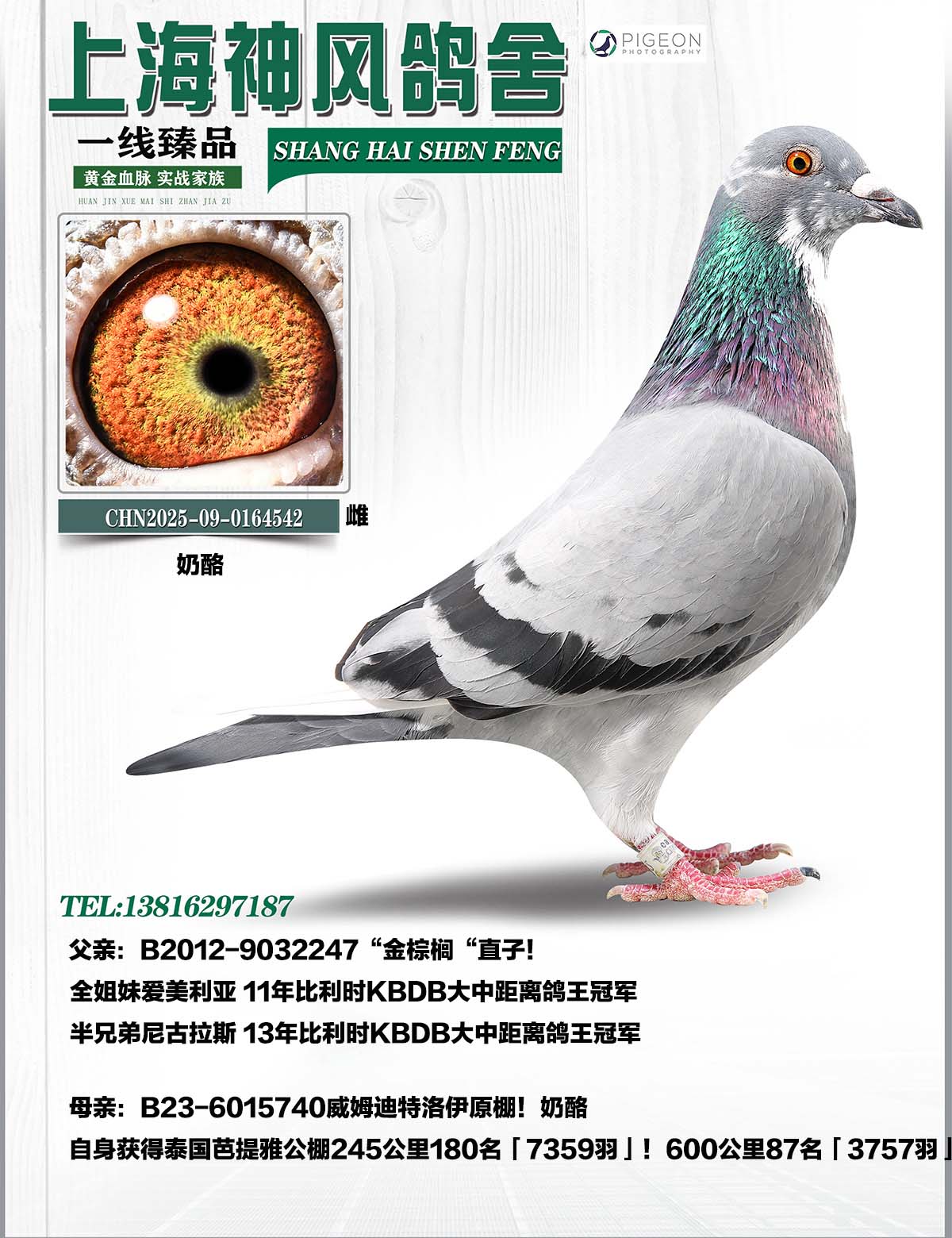 增祖父:02B2326226 新鴿王直孫 半兄弟貝澤國家賽賽區(qū)亞軍 半兄弟鋼鐵俠 作出09年亞精頓國家賽15名