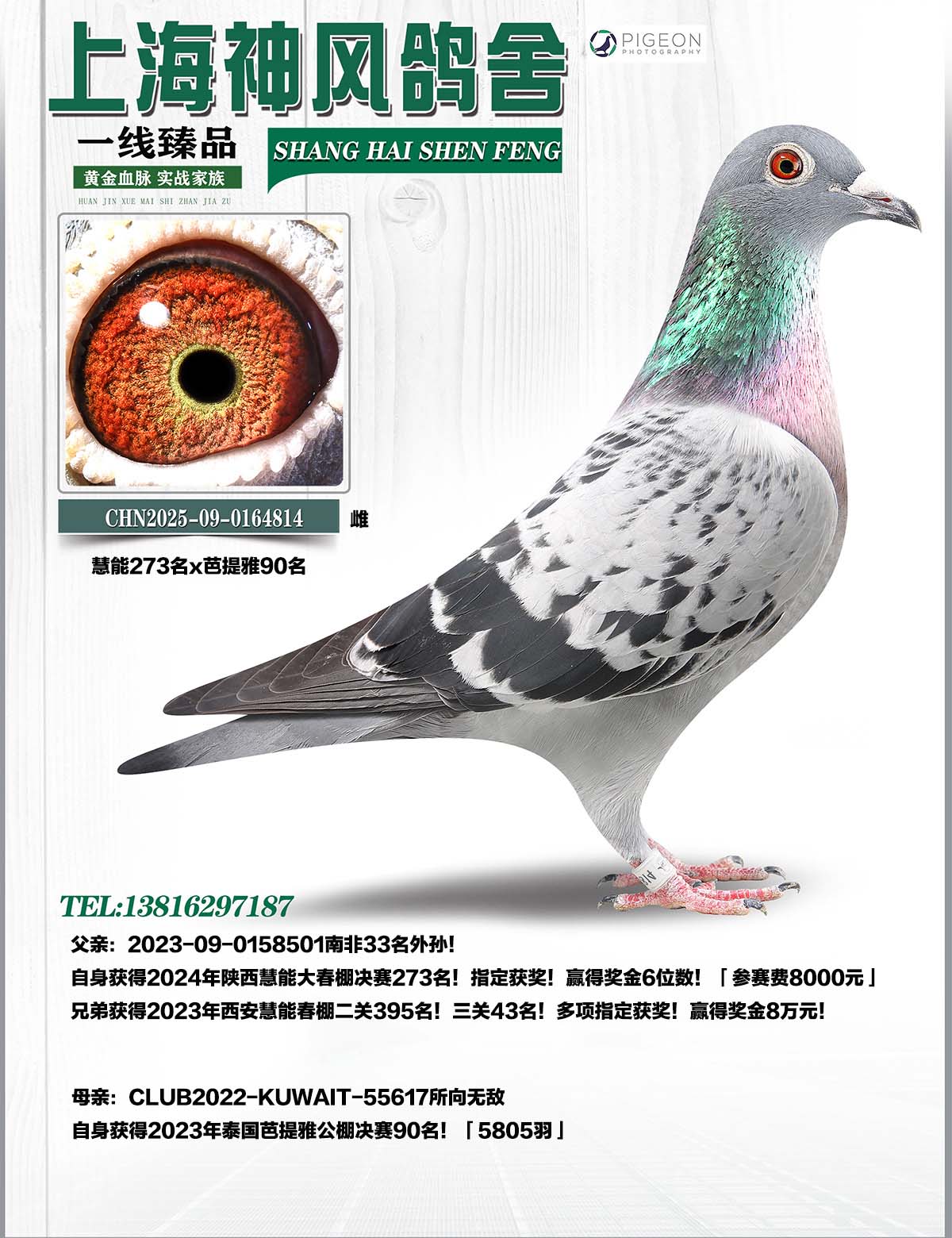 自身和同父母兄弟姐妹本飛和作出子代獲得獎金幾百萬!在開爾大棚!西安慧能!江蘇愛翔!山東翔宇!神州輝煌!等幾十家公棚均有上佳表現(xiàn)!以下是部分成績「不完全統(tǒng)計」