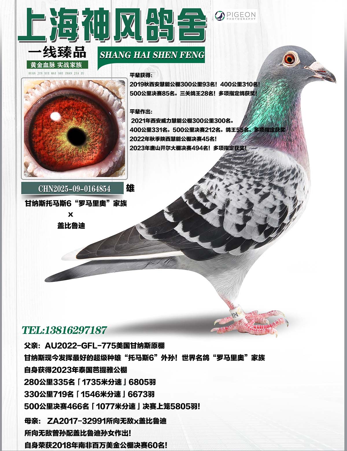 —“托馬斯6號(hào)”的外祖父是傳奇鴿“羅馬尼奧”,作育子孫后代榮獲: