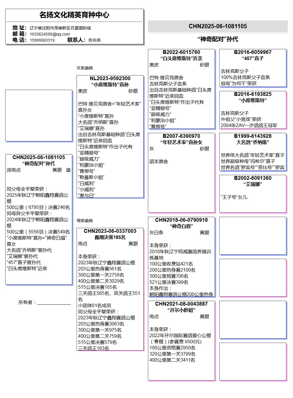 【關(guān)于血統(tǒng)書】所有拍賣鴿有血統(tǒng)書或者獎(jiǎng)杯的本舍都以上傳‘沒上傳就表示沒有’