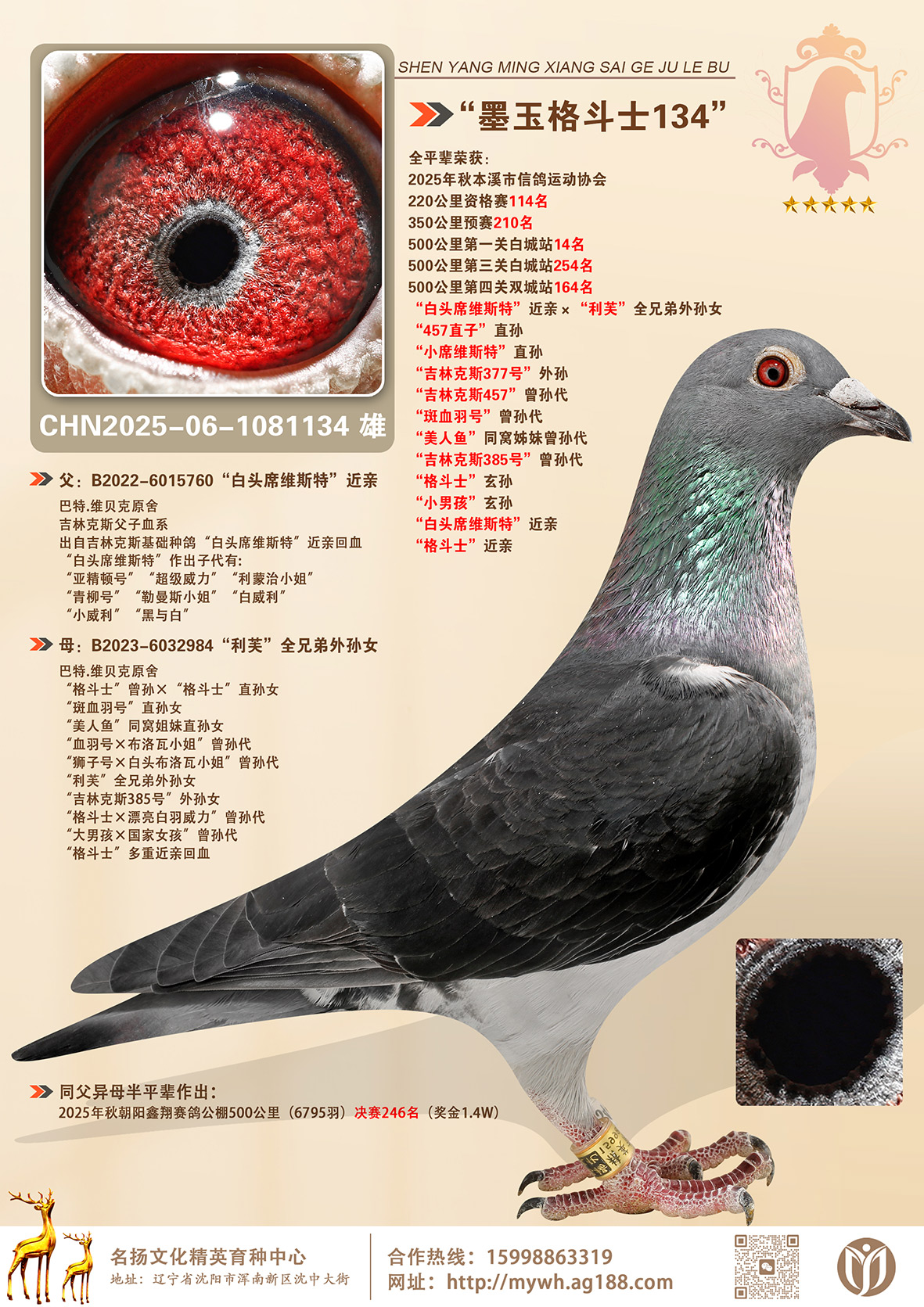 所有拍賣鴿全部血統(tǒng)真實(shí)。人鑒鴿觀點(diǎn)不一,飛不飛天上見.血統(tǒng)成績第一