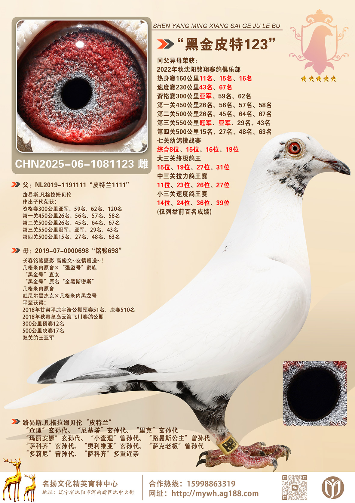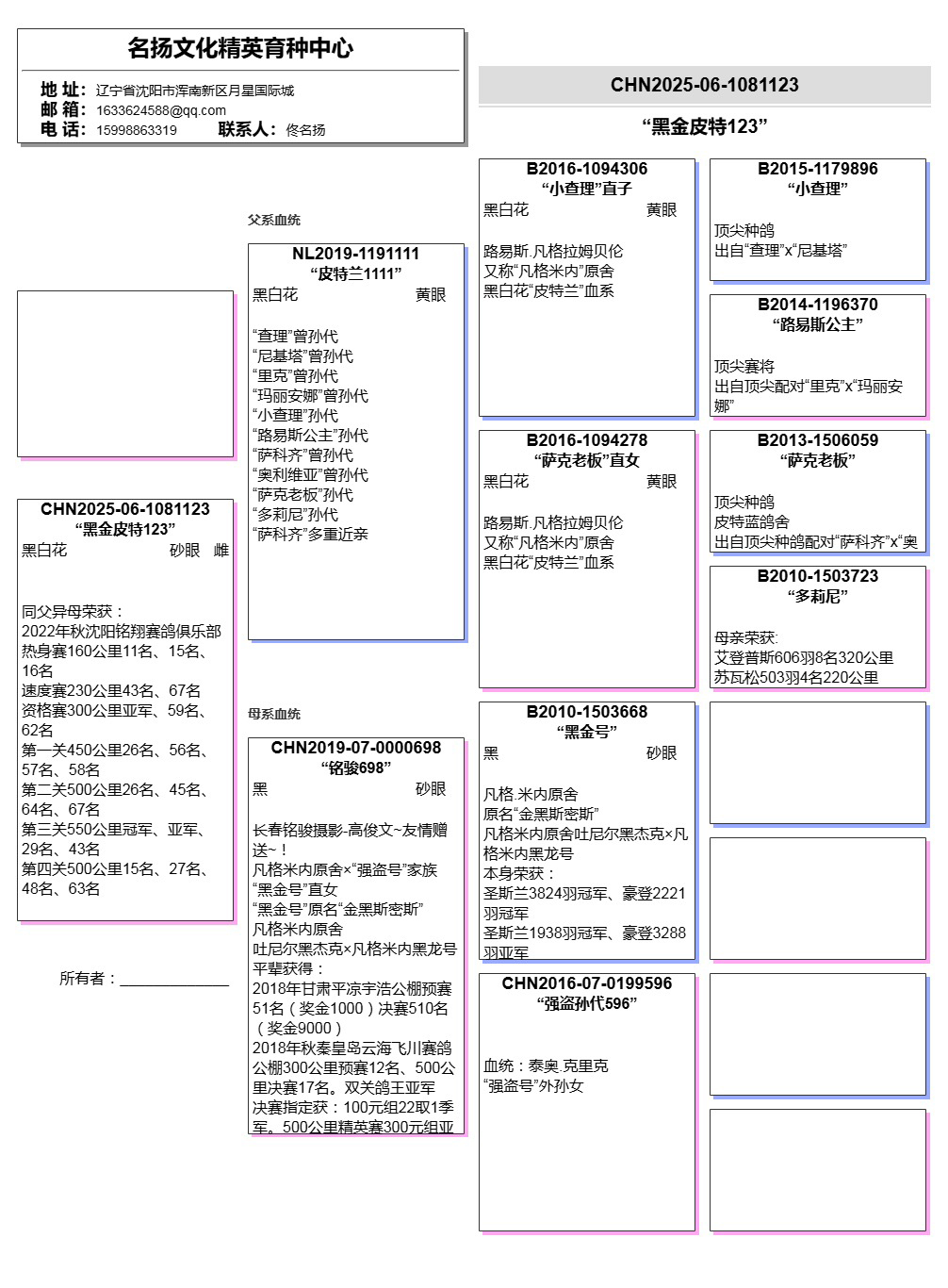所有拍賣鴿全部血統(tǒng)真實(shí)!個(gè)人鑒鴿觀點(diǎn)不一,飛不飛天上見.血統(tǒng)成績第一