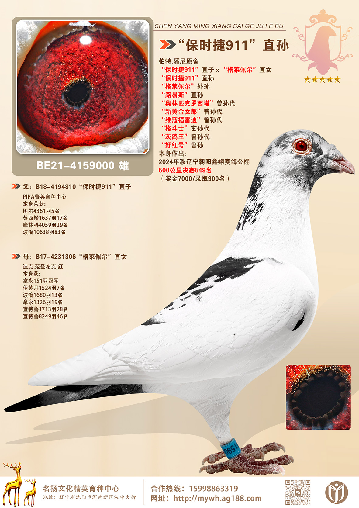 所有拍賣鴿全部血統(tǒng)真實(shí)。(gè)人鑒鴿觀點(diǎn)不一,飛不飛天上見.血統(tǒng)成績第一