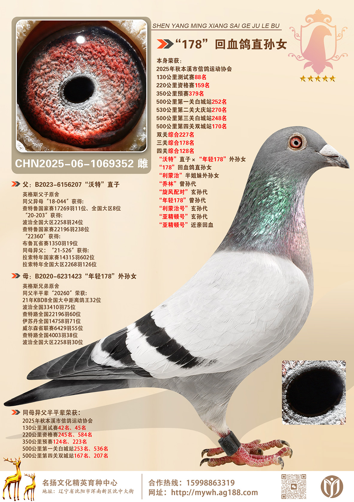 所有拍賣鴿全部血統(tǒng)真實(shí)。(gè)人鑒鴿觀點(diǎn)不一,飛不飛天上見(jiàn).血統(tǒng)成績(jī)第一
