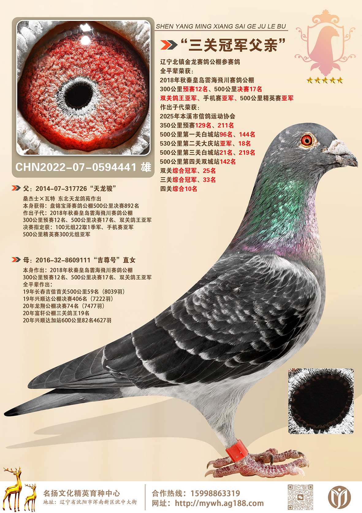 300公里預(yù)賽12名、500公里決賽17名、雙關(guān)鴿王亞軍