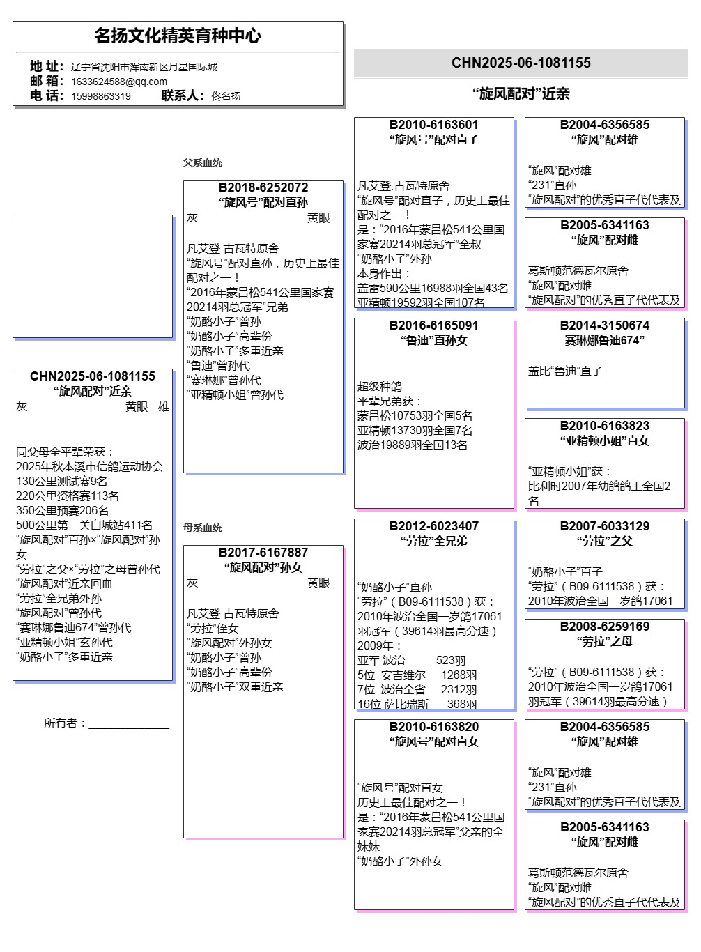 所有拍賣鴿全部血統(tǒng)真實!個人鑒鴿觀點(diǎn)不一,飛不飛天上見.血統(tǒng)成績第一