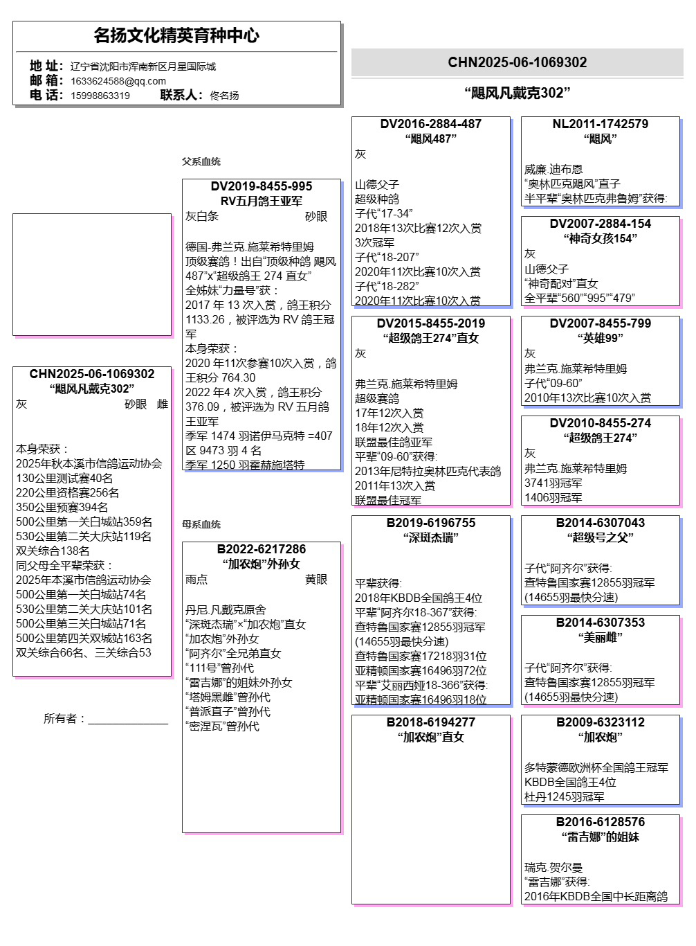 祖母:DV2015-8455-2019“超級(jí)鴿王274”直女