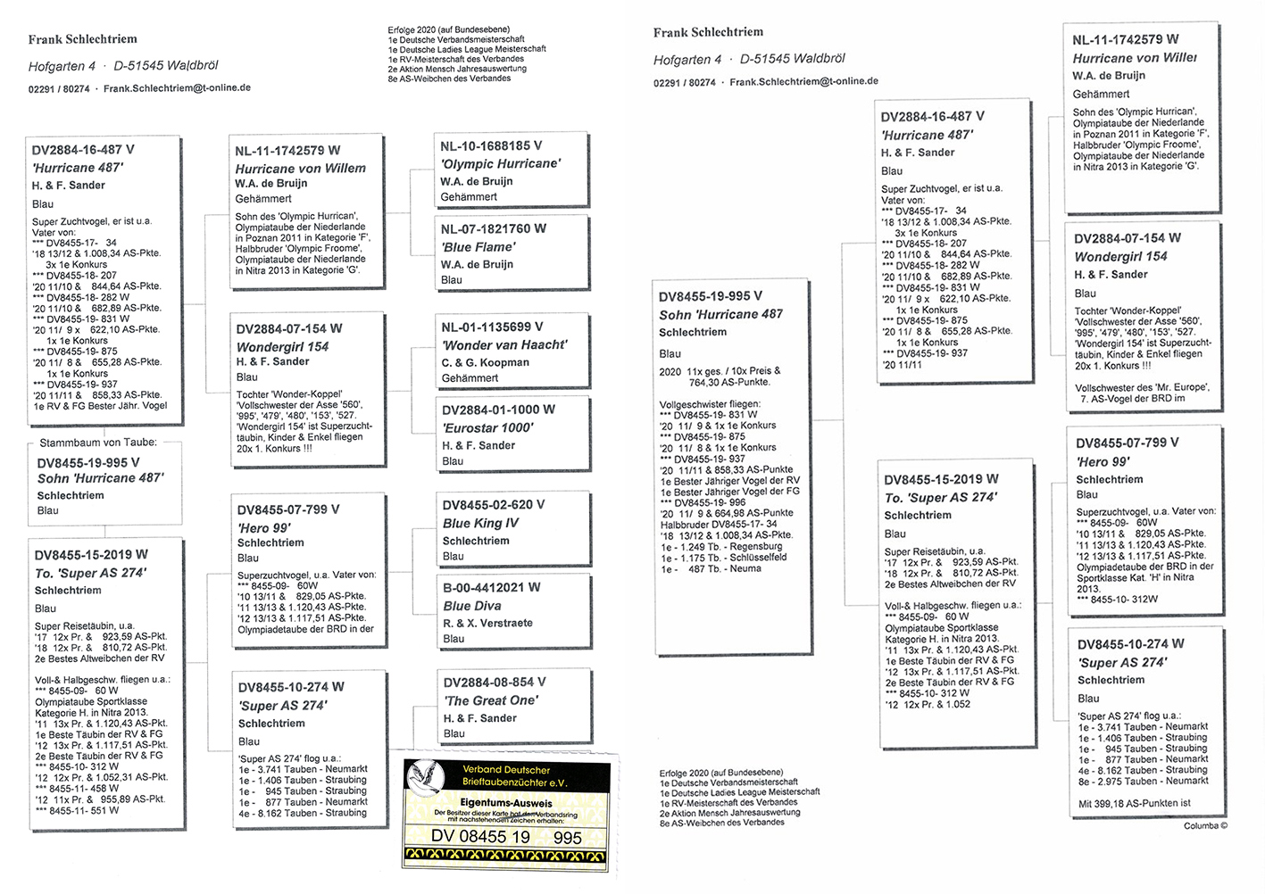 德國-弗蘭克.施萊希特里姆頂級賽鴿! RV 五月鴿王亞軍