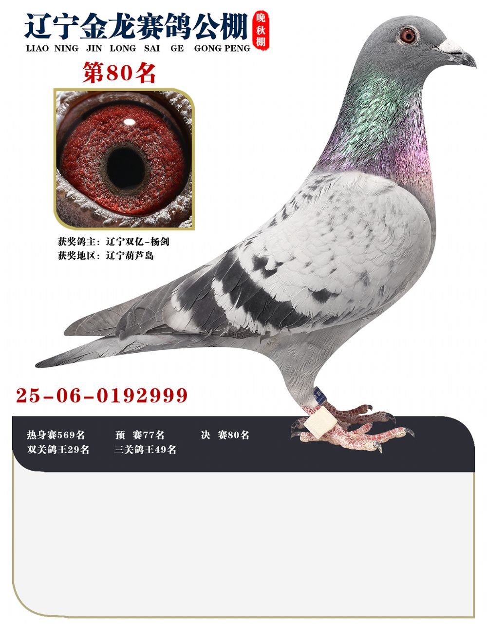 - 當前查看拍賣鴿:北鎮(zhèn)金龍晚秋棚決賽80名