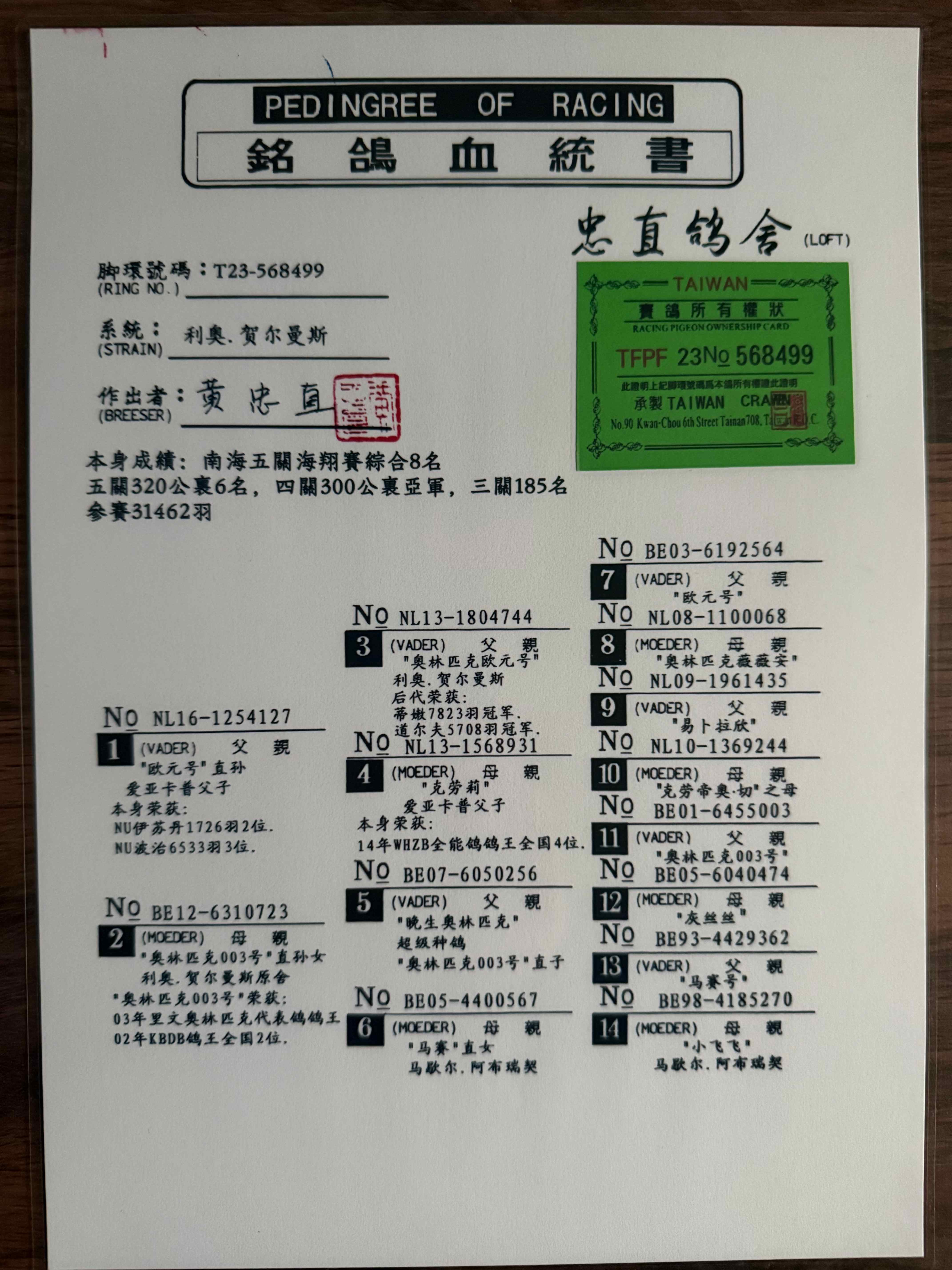 - 當(dāng)前查看拍賣鴿:臺(tái)灣黃忠直”利奧.赫爾曼斯“ 本身成績(jī)