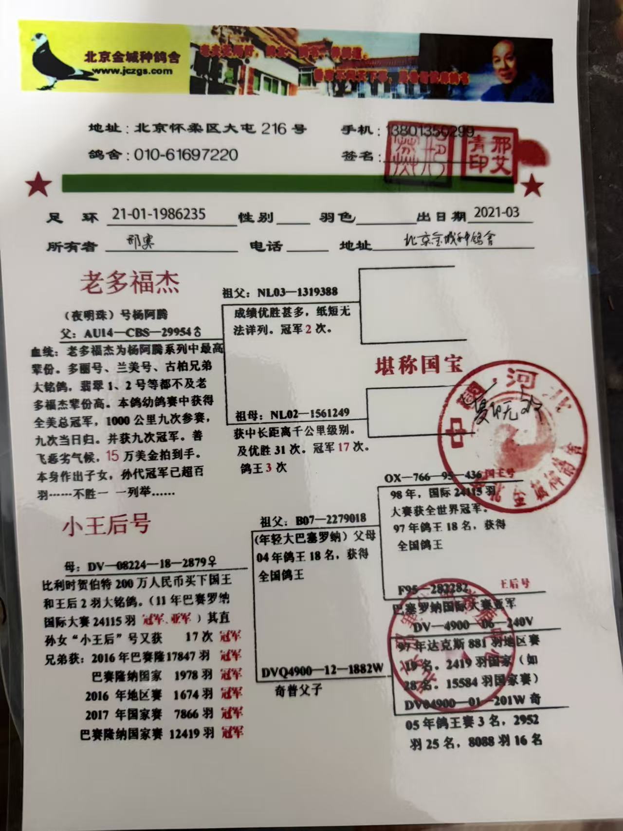 - 當(dāng)前查看拍賣鴿:北京金城鴿舍 :老多福杰種雄