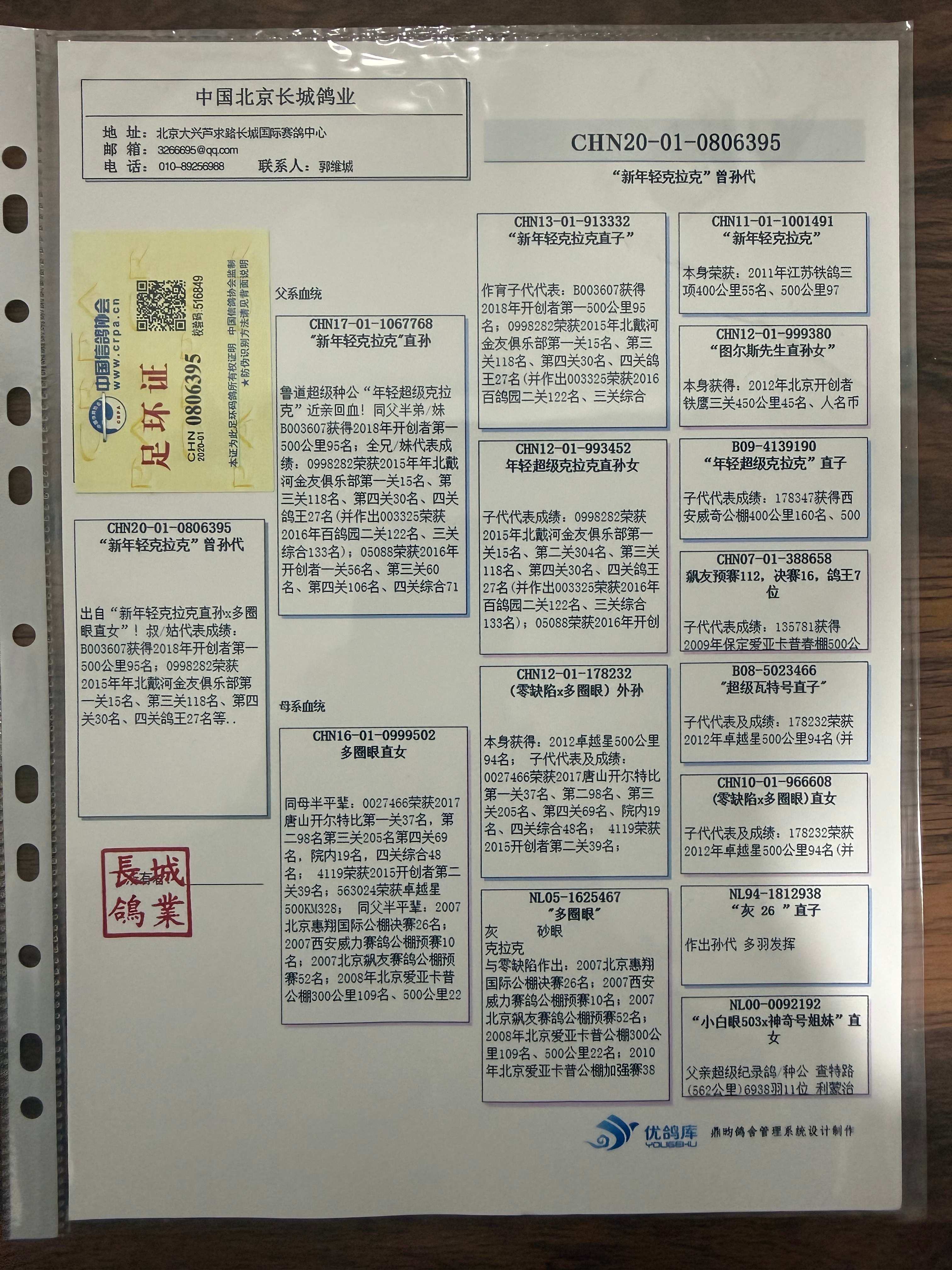北京長城鴿業(yè)”新年輕克拉克“曾孫代作育
