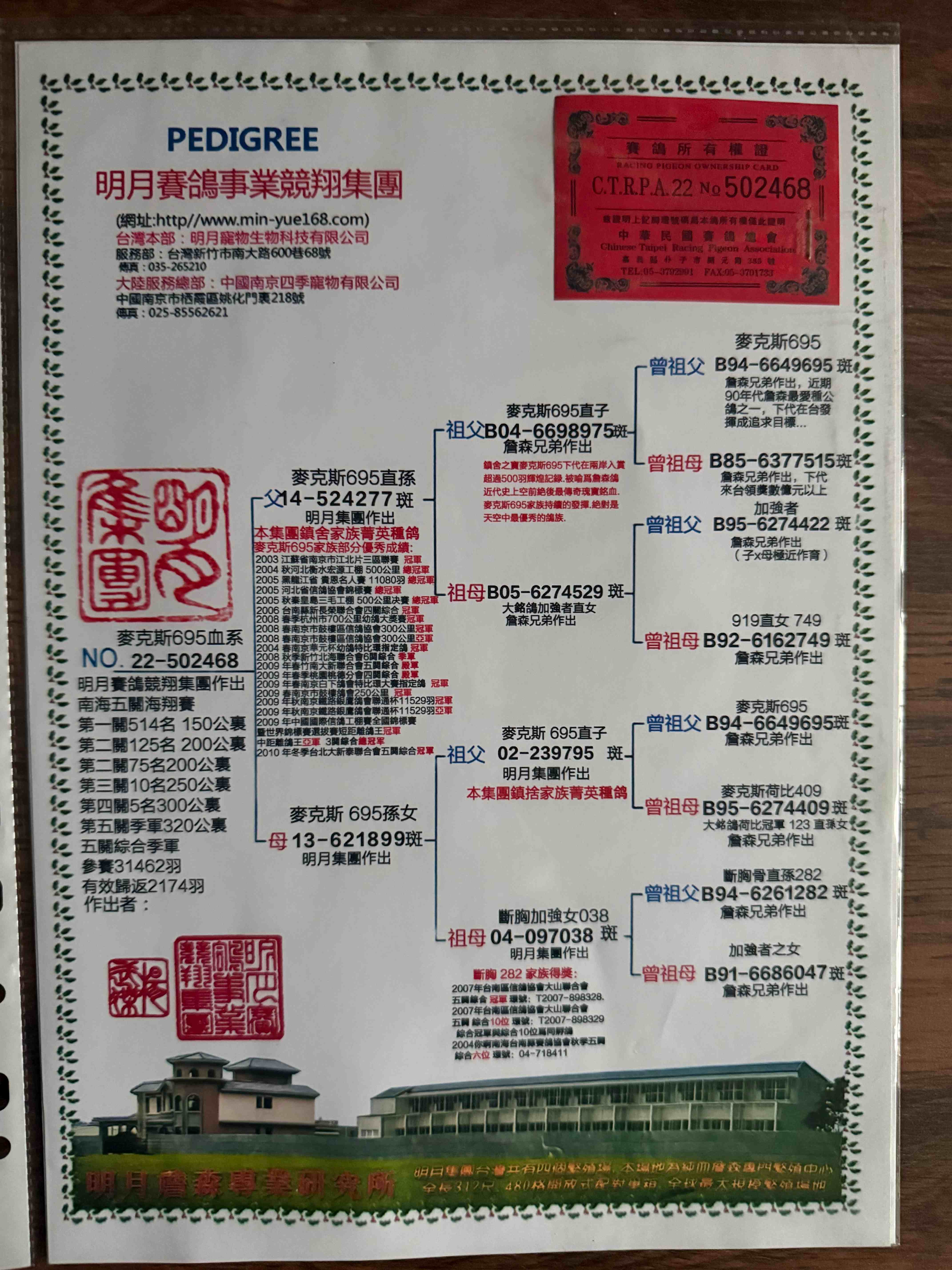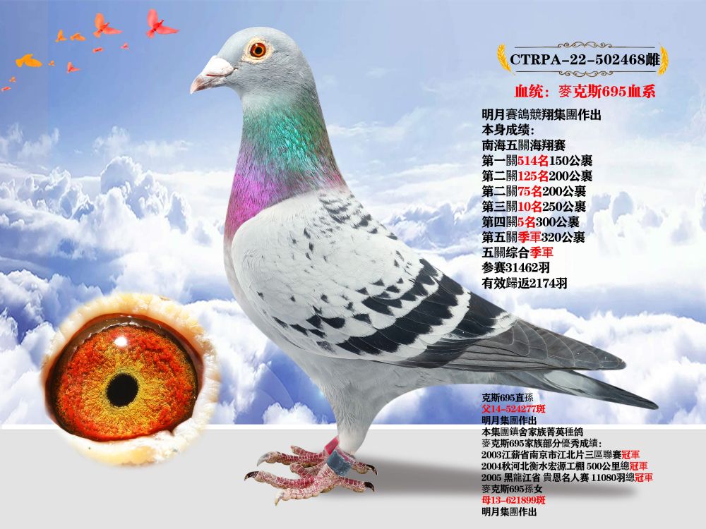 - 當(dāng)前查看拍賣鴿:臺(tái)灣明月賽鴿競(jìng)翔集團(tuán)”麥克斯695血系“