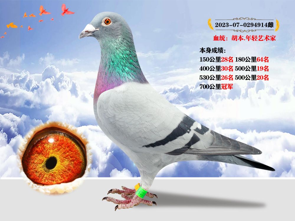 強(qiáng)烈推薦:血統(tǒng)”胡本.年輕藝術(shù)家“ 本身成績(jī)700公里冠軍