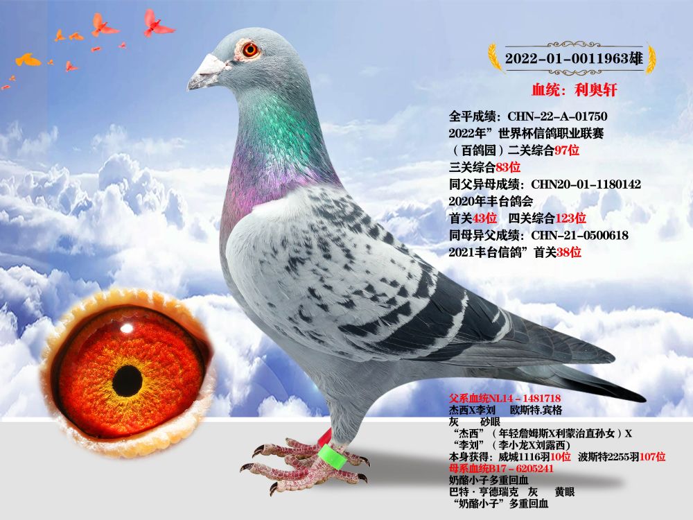 1615621 血統(tǒng)楊胡曼斯.哈利血系 本身獲得:四關(guān)鴿王亞軍 ¥0元 0次