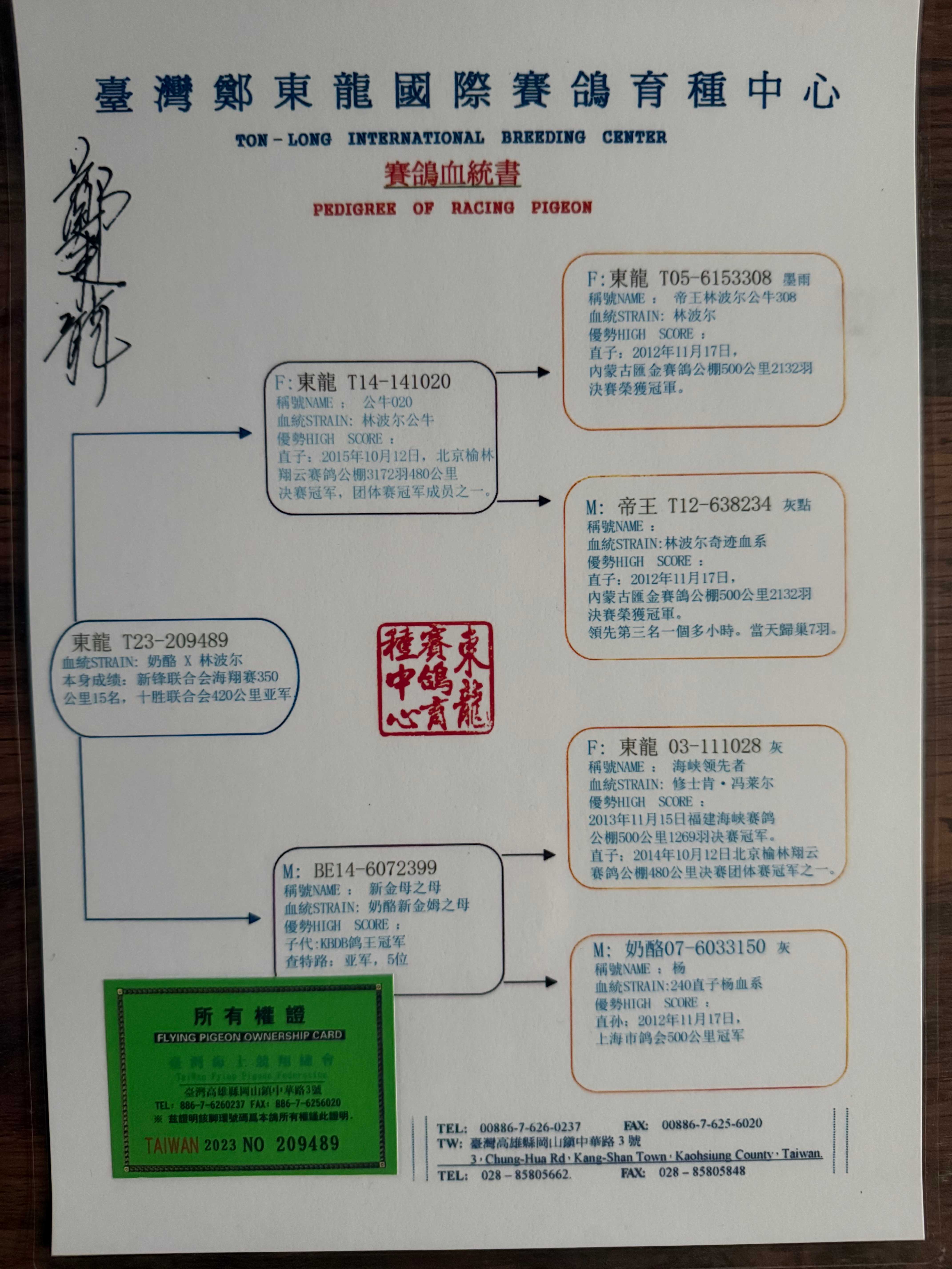 - 當(dāng)前查看拍賣鴿:臺灣鄭東龍育種中心作出 本身獲得420公