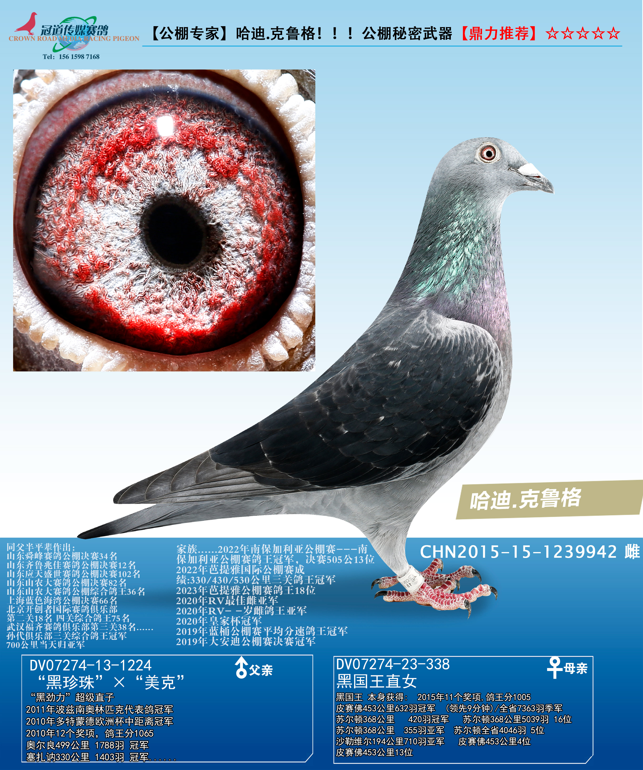 1615823 FCI世界最佳短距離鴿鴿王全國(guó)1位(“白人”)近親 ¥1000元 0次